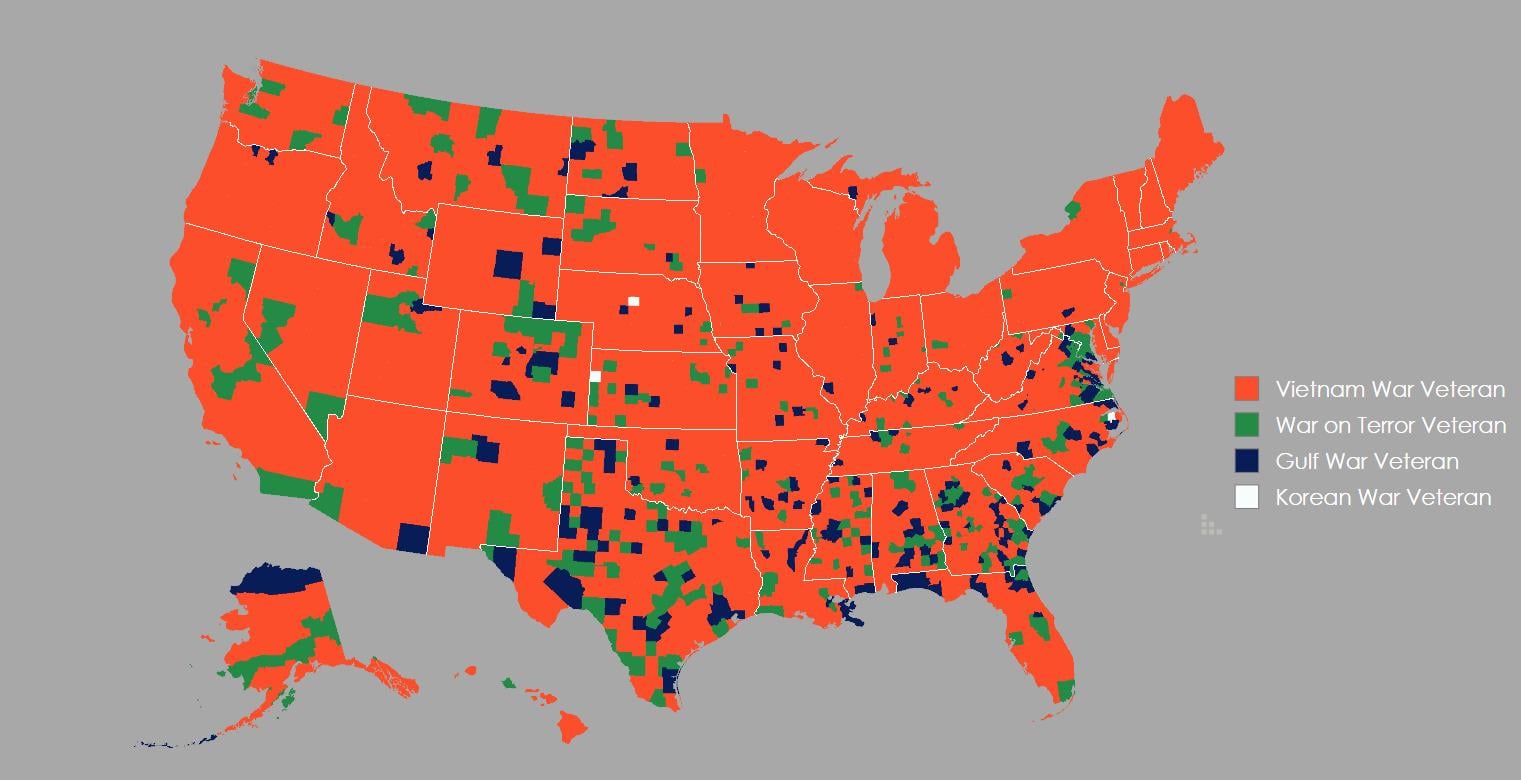 Those two places in the middle of the US with the most Korean War Veterans must be really interesting.