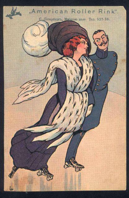 A fashionable hobby imported from the United States quickly became a symbol of vice. Note the glances exchanged between the couple in the advertisement. The roller rink on the Champ de Mars represents the ultimate moral decline of the imperial officials who allowed such a thing on a field dedicated to military victories. Besides the rink itself, the rink contained restaurants with private rooms, where people came not only to discuss “little issues” (corruption-related matters) but also to pimp and engage in debauchery. Murders were even committed there.
