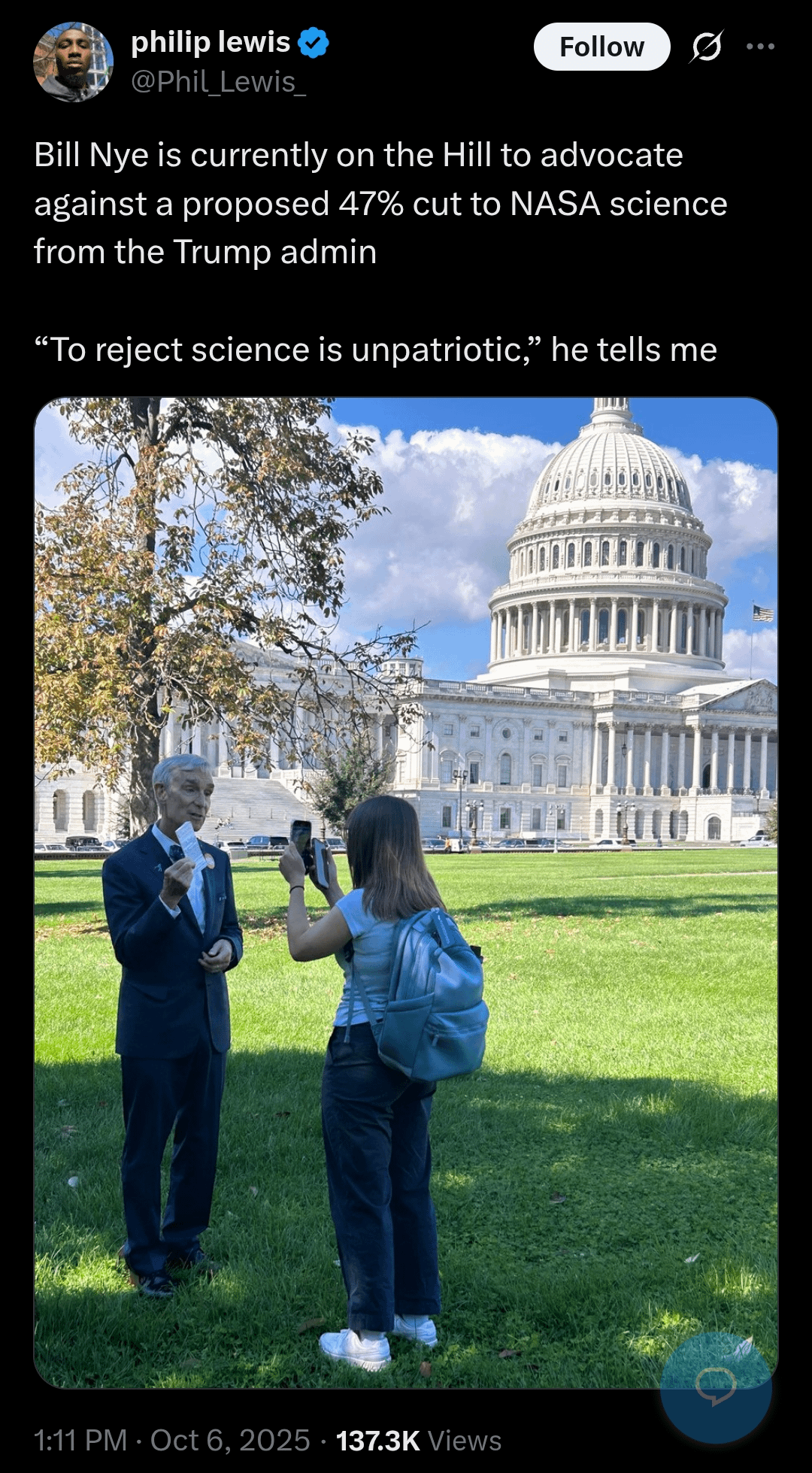 Agreed STEM in general needs the funding and support for future space missions, technological advances and medical progression. This should be a no brainer. The fact we have scientists having to promote science like we aren’t using the latest and greatest due to various fields that make up science is alarming.