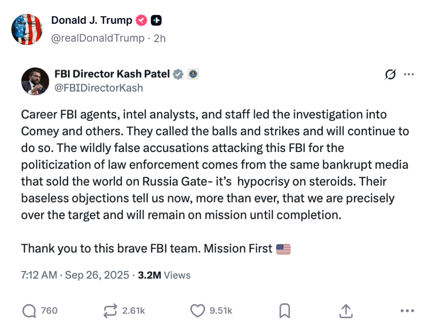 So yeah, I’d say Kash Patel’s snivelingly obsequious sycophantic bias in favour of his King, Trump, is well and truly established to the point of embarrassingly absurd caricature. I mean, FFS, Patel probably thinks the word “objectivity” means the hidden potential within inanimate objects and thus the dangers they can pose clumsy wizards. Like when you stub your toe.