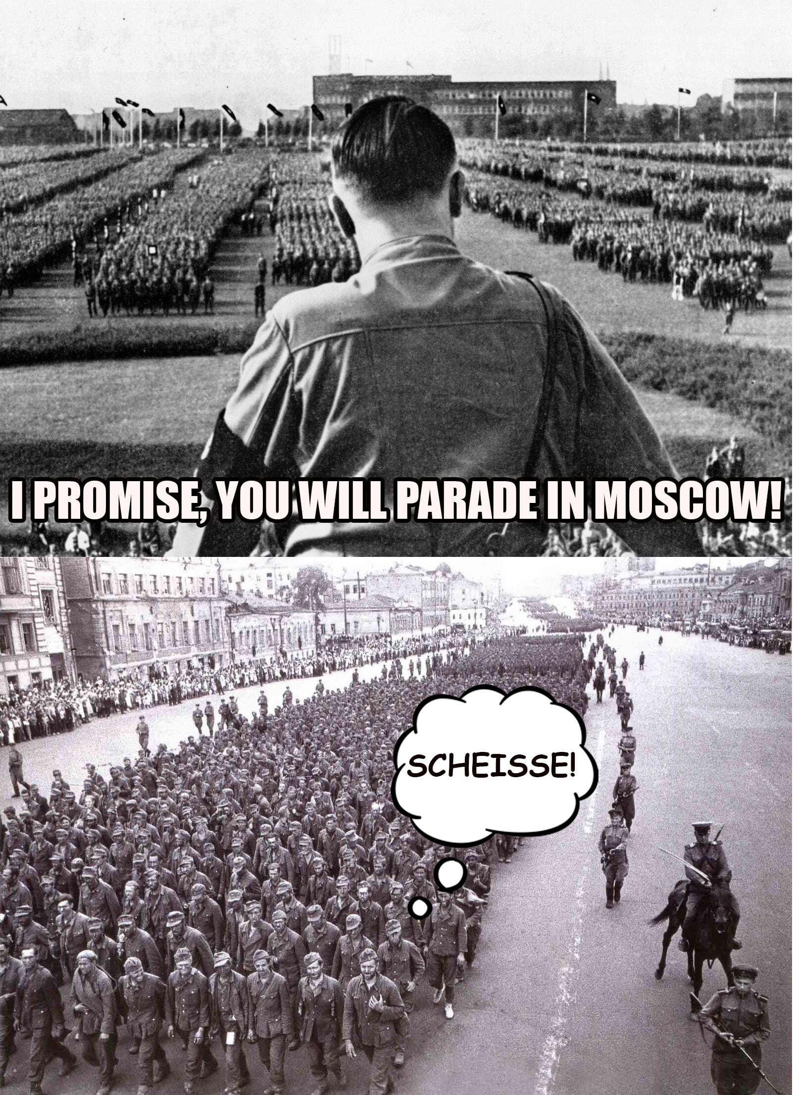 whiteshore44 on October 7, 2025 5:53 am Well, Hitler did not specify how they would parade in Moscow when he promised them a parade.