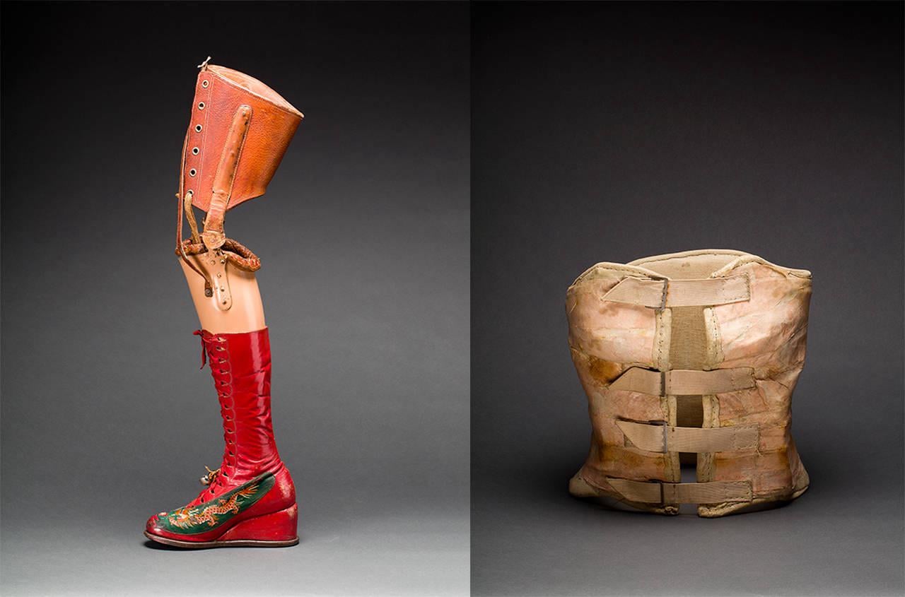 Left: Prosthetic leg with leather boot, 1953 – 4, Mexico. Right: Plaster corset, about 1954, Mexico. by bitsxbotanicals