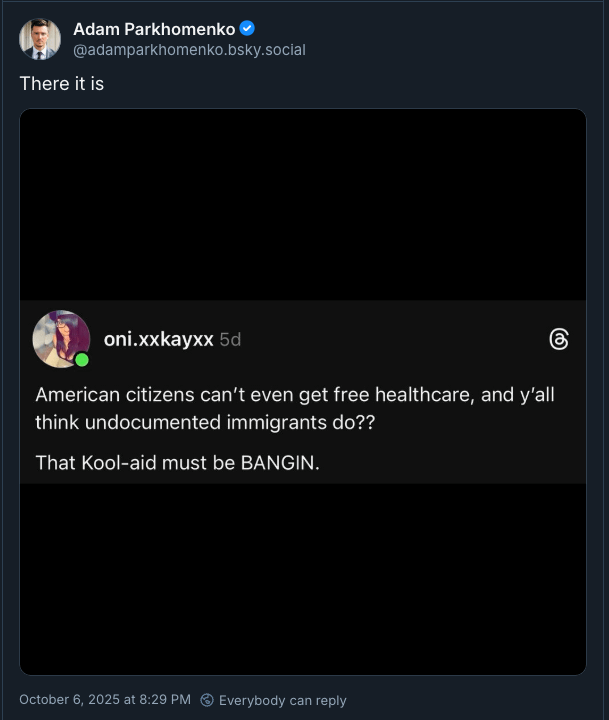 I mean that’s literally what they think. That Americans can’t get healthcare but immigrants do.Â