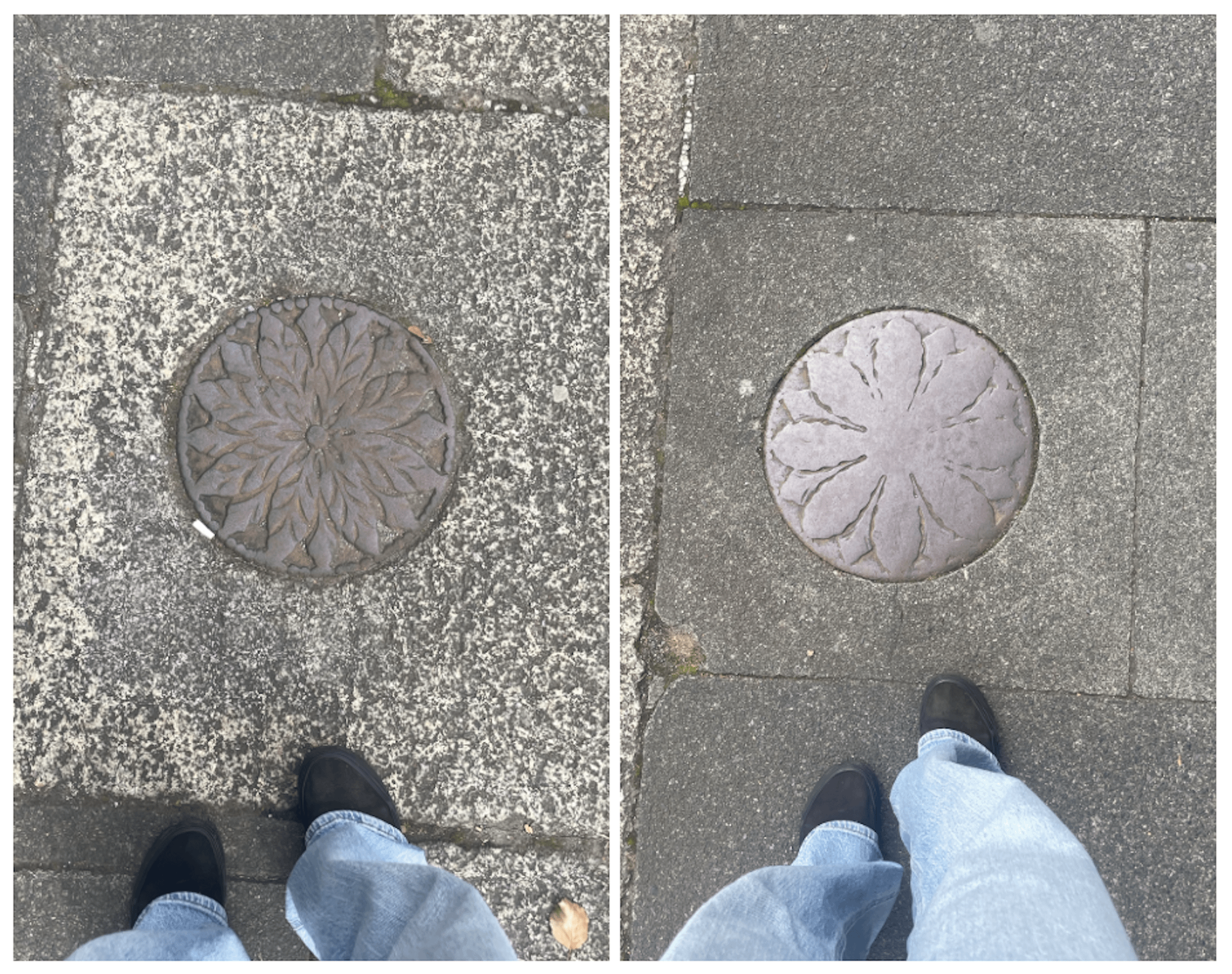 [OC] Steel Manhole Cover in a Highly Trafficked Area of Dublin Versus a Low Traffic Area by Fun_Top7741