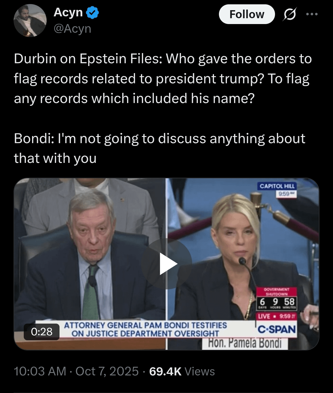 As sad as it is, even Fox pays attention to biting comments. So asking Bondi “Will you say the same thing at the Nuremberg Trials” or pointing out “Isn’t the lies you say now EXACTLY what Comey was indicted for” might have a better chance of going viral than allowing her to just deny everything.