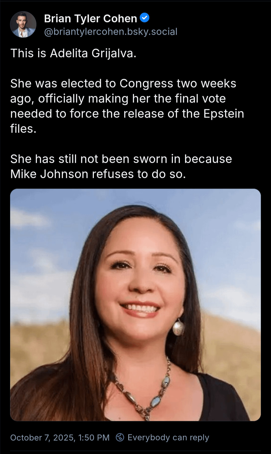 Honestly what needs to happen is for the Dems to say fck it we’re doing it anyway. Swear her in. Hold the vote and proceed as normal. I get that this is abandoning procedure and decorum but the fascist takeover is here and happening. Time to go against the grain a bit and put them on the back foot.