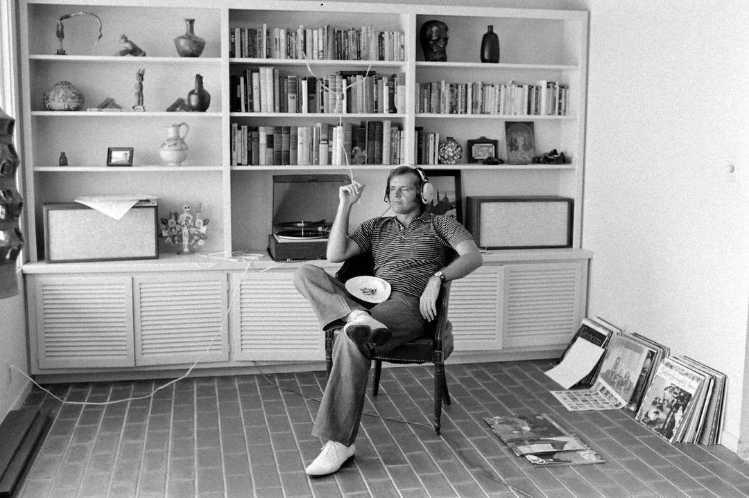 You think he’s listening to tunes, but in reality all the records just have him repeating over and over, “All work and no play makes jack a dull boy”.