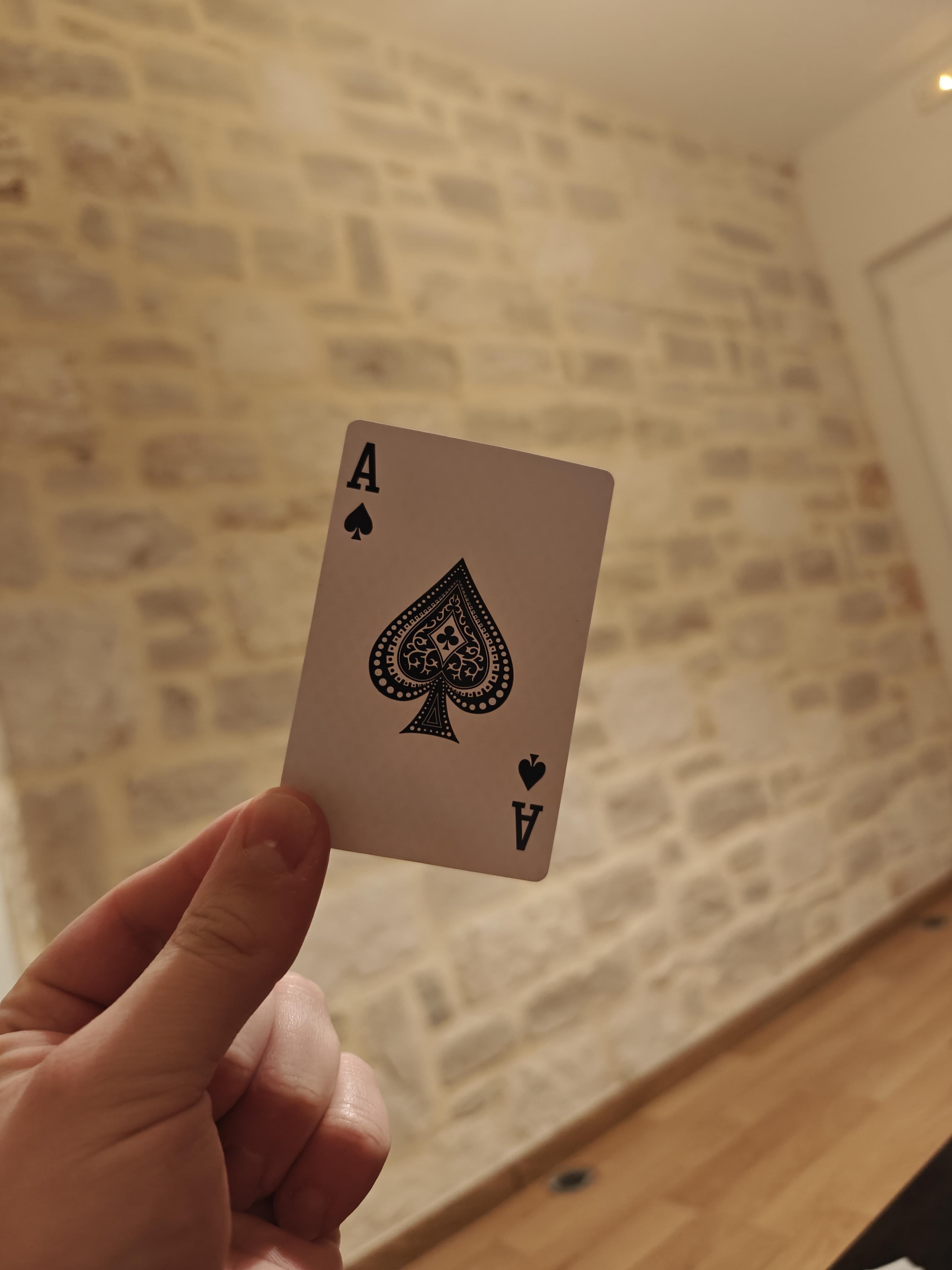 EnigmaT1m on October 7, 2025 7:26 pm And a diamond. And a heart. Pretty normal for an Ace of Spades tbh, they very often have all 4 suits represented in the pattern of the spade. Edited to add, moving inwards from the outside to the centre you have Spade > Heart > Diamond > Club showing the priority order of the suits. Spades beats hearts beats diamonds beats clubs.