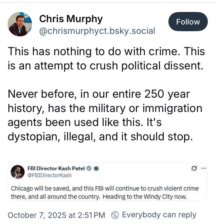 Stephen Miller is running all of this. The aim is to show Democratic cities and states as out of control so that they can put in place the Insurrection Act. Then they have created a so-called reason to put down all dissent and stop all social media such as this. They will also jail dissidents. He has already set it up that Democrats are domestic terrorists. Saw it start in L.A. STAND UP!!