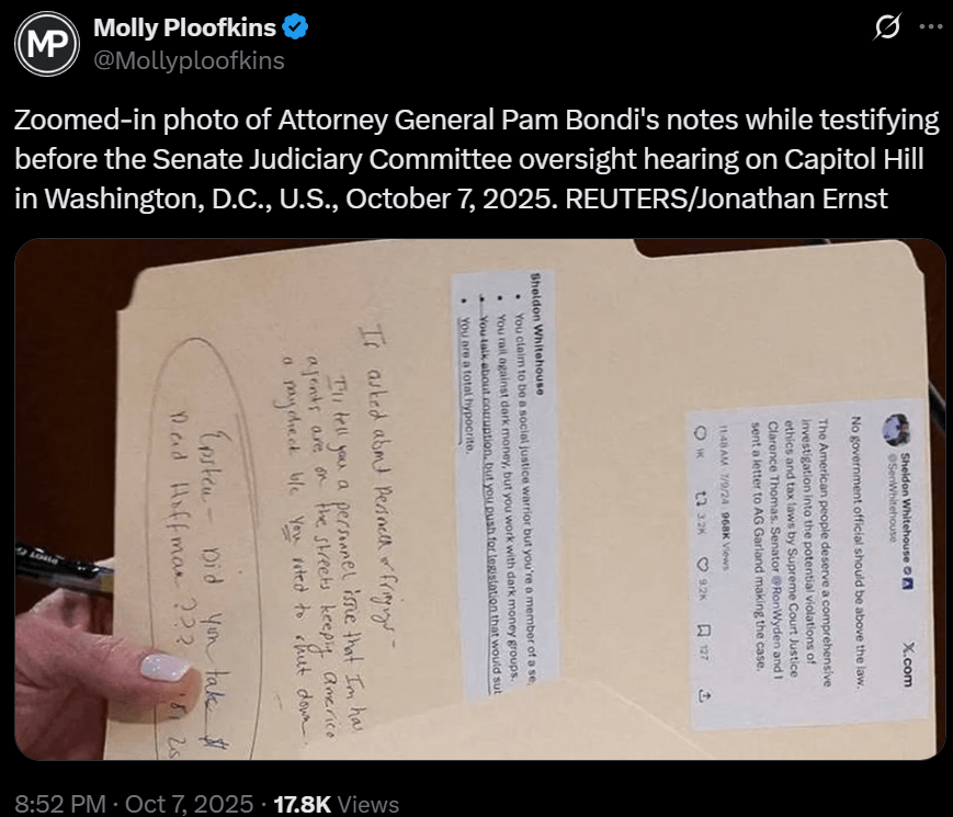 Lol she had to write notes to attack folks with instead of any facts to answer. This should be obstruction of justice and dereliction of duty