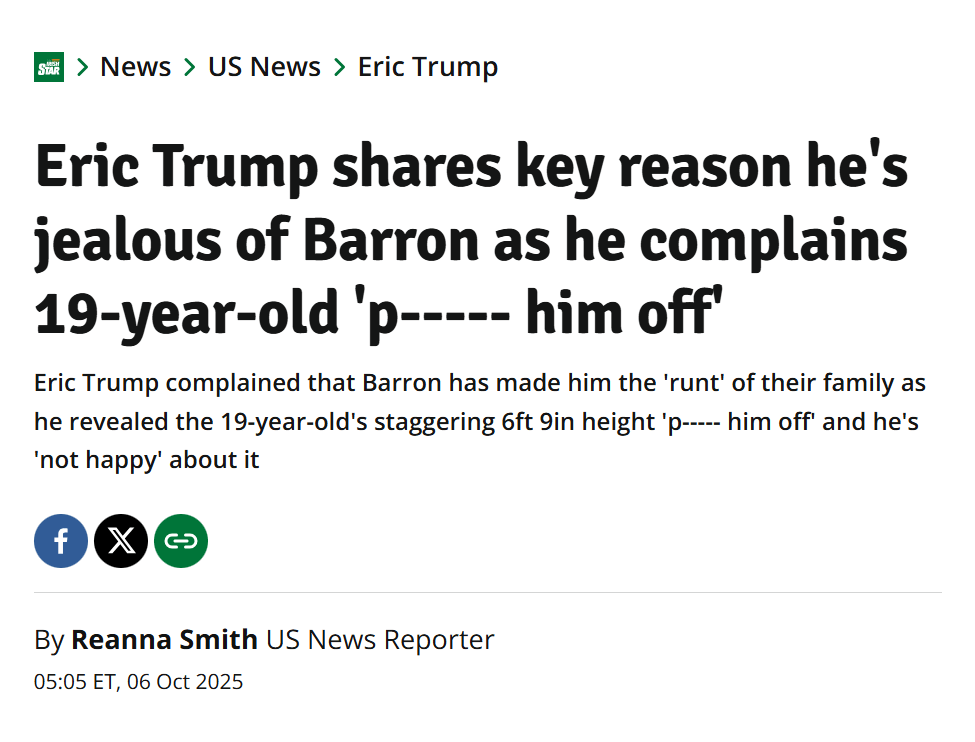Wait they censored “pisses”?! And Barron is almost 7ft tall?! Is this like how trump is “6ft3”?