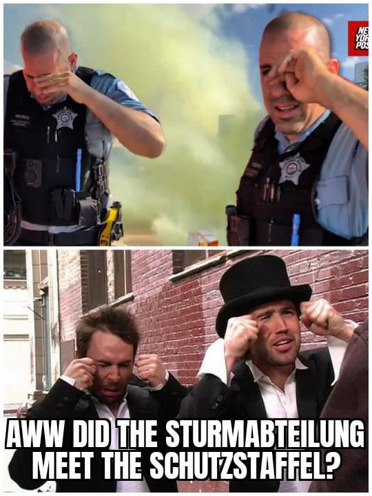 CosmoLamer on October 8, 2025 10:26 am I have no idea what either of these German groups are, but I can assume they are fascists who fought each other.