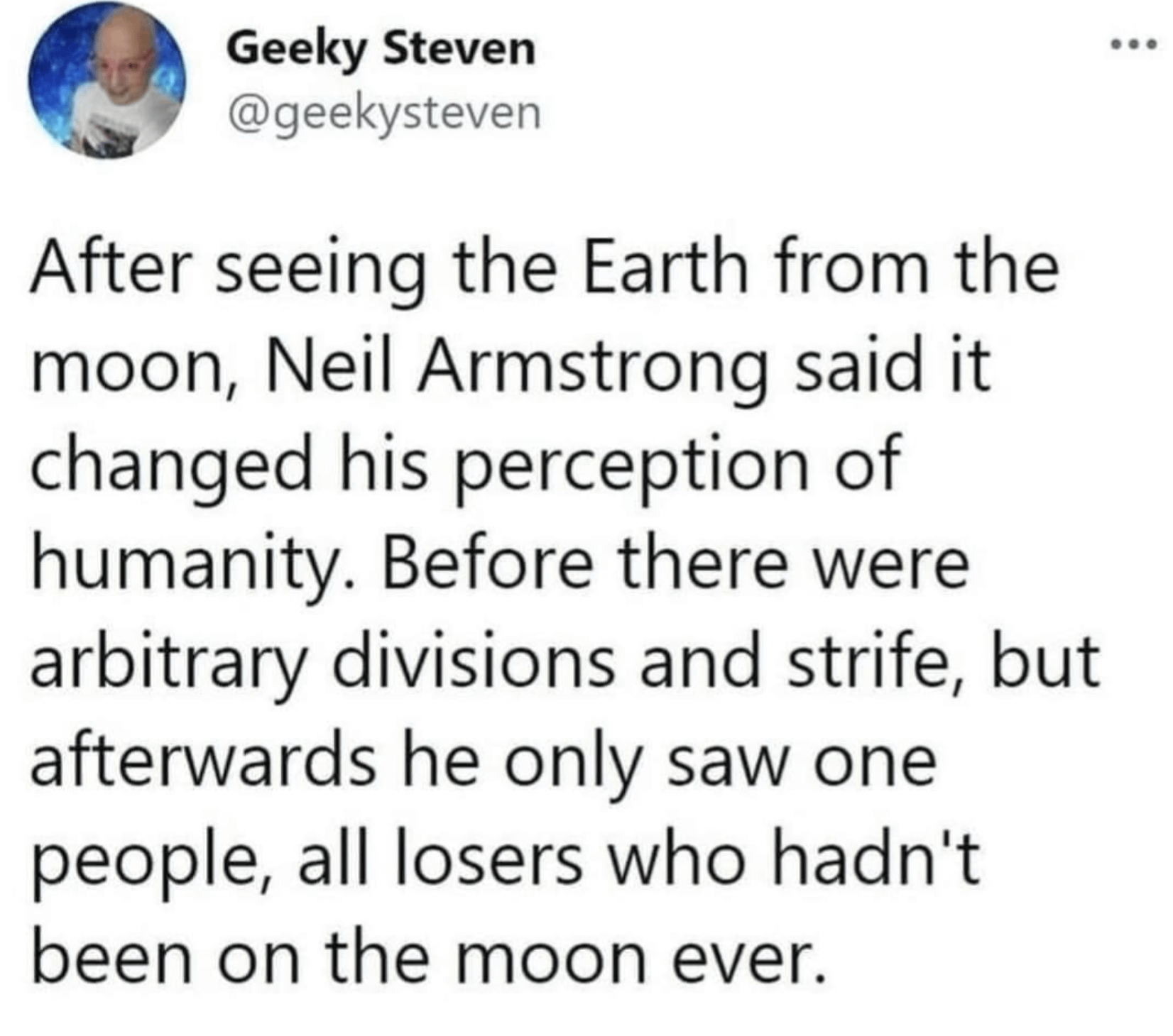 To be fair, sounds more like something Buzz Aldrin would say. Neil seemed like the type to be disappointed in a quiet fatherly way for you not reaching the moon 😀