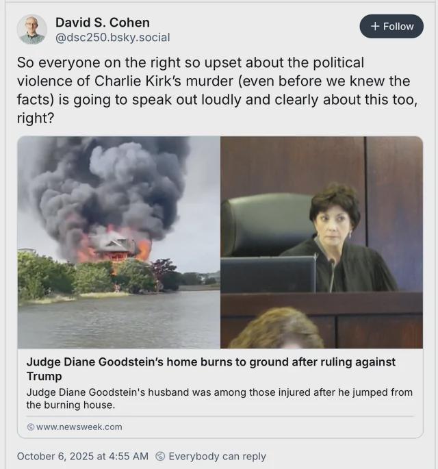 “So far, there is no evidence to support unfounded claims that Goodstein’s home was set ablaze due to arson or a political motive.”