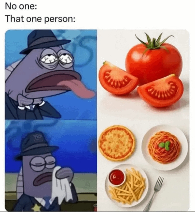 A tomato by itself? Disgusting get it away from me