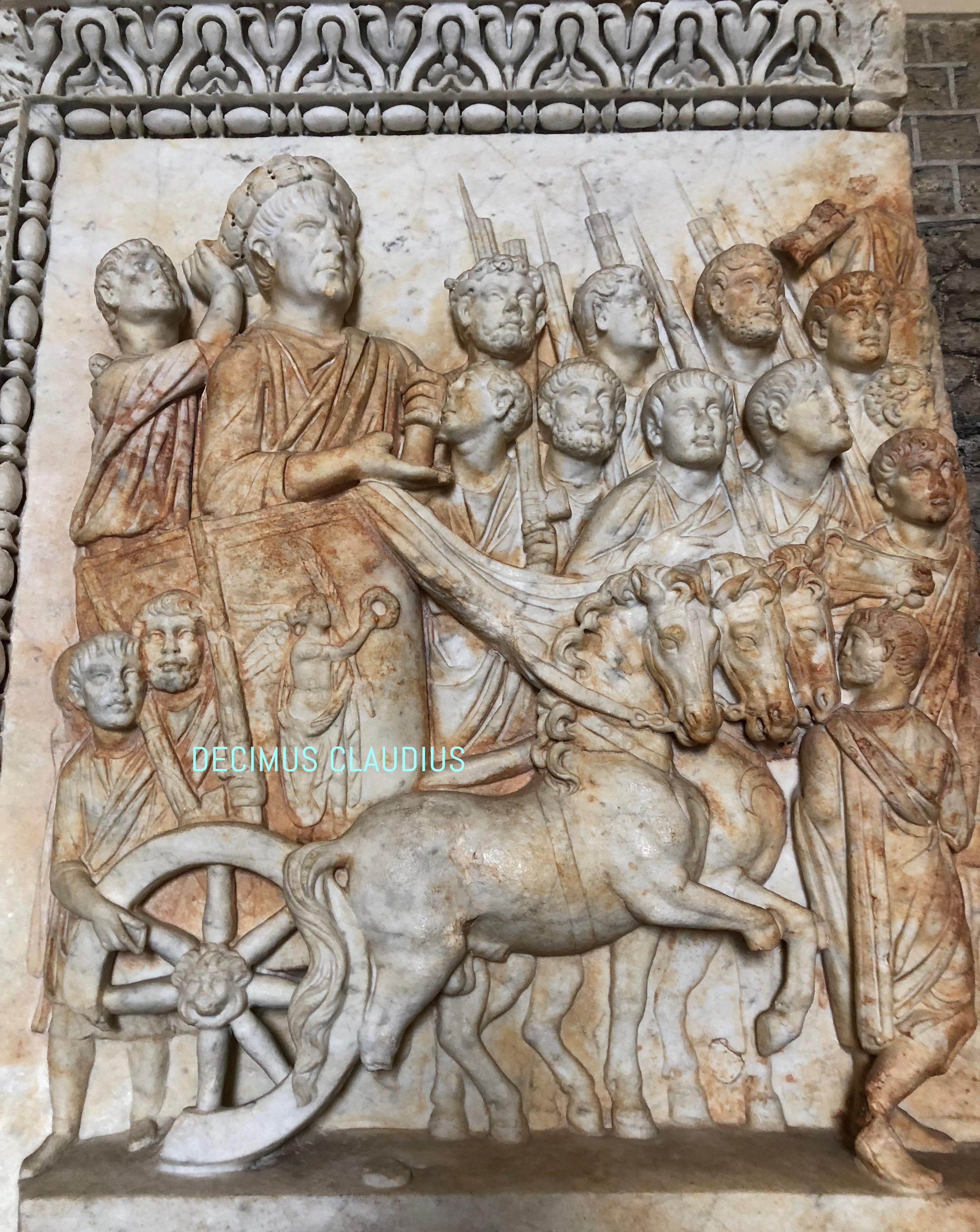 A Roman relief of the triumph of Emperor Trajan, which he celebrated twice over the Dacians in the very early 2nd century AD when this piece was made. It is on display in the archaeological museum of Palestrina in Palestrina, Italy.