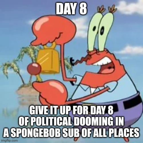It’s a sub for SpongeBob memes and shitposts. It’s not like we’re only here to have sophisticated discussions about SpongeBob. Memes and shitposts can be about anything.