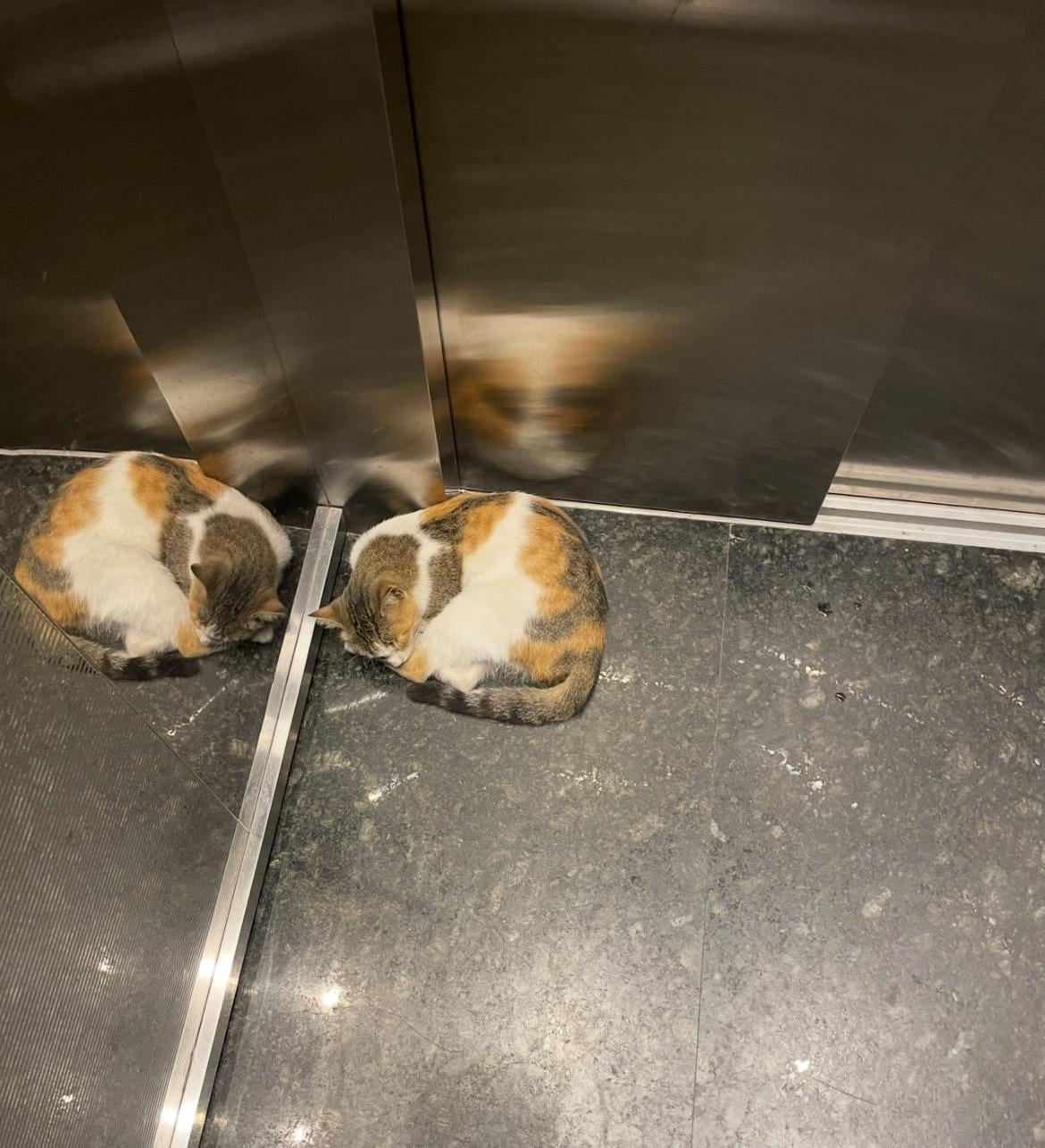 there is clearly 2 cats in the elevator