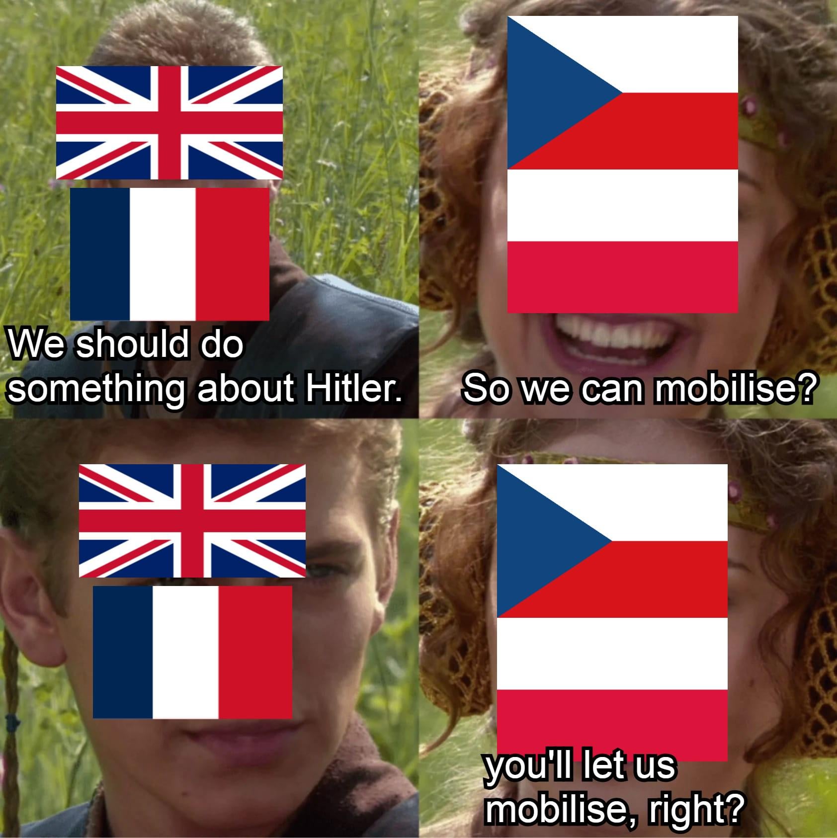 Since when are Poland and Czechoslovakia part of the Franco-British Empire? They’re not? Then why would they be able to control what the Czechs or Poles did?