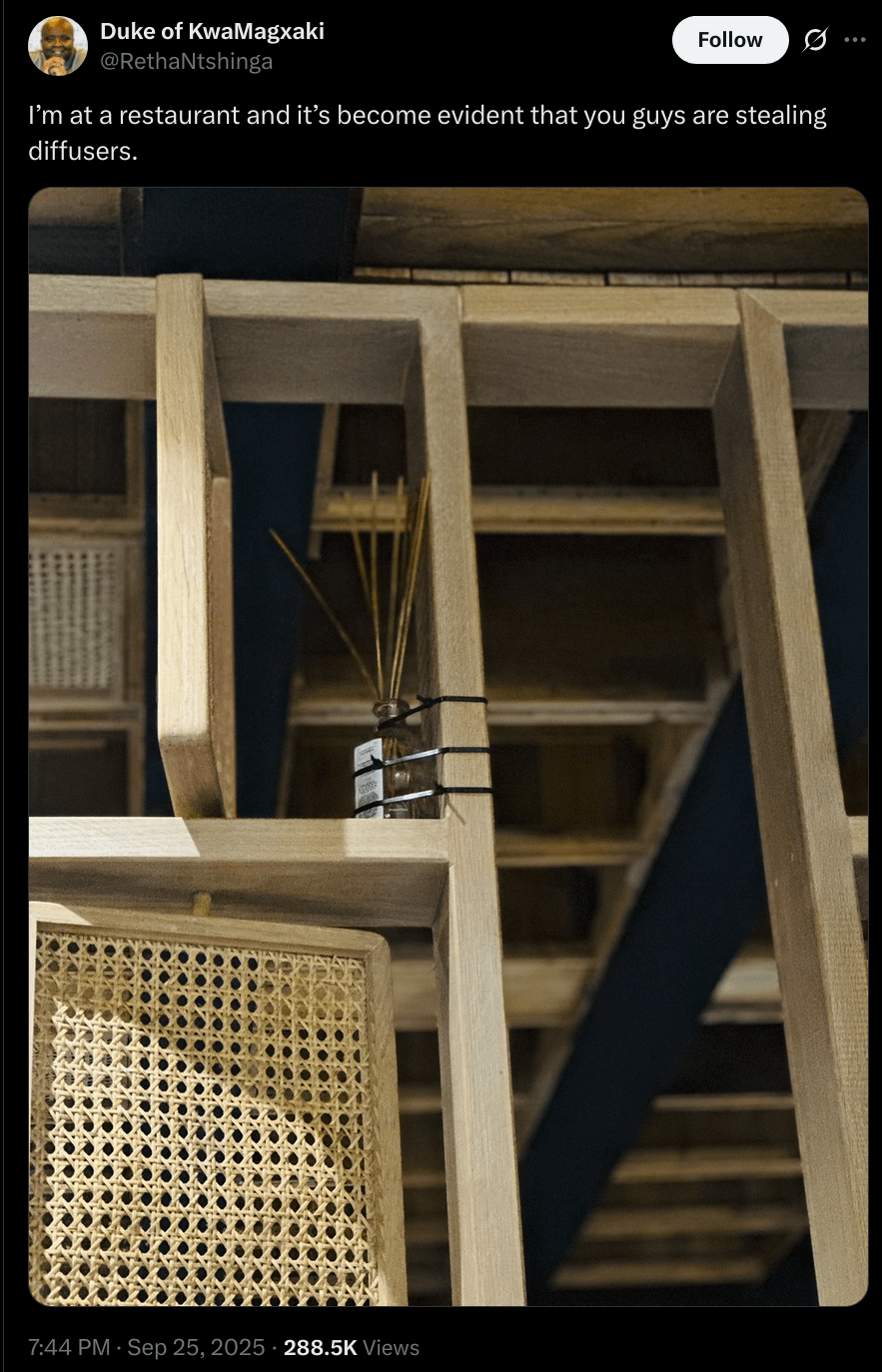 My wife would steal one of those… low key, she’ll steal anything from a restaurant… napkins, flatware, nice shot glasses, salt shakers, etc… she don’t even need none of it, she just like to steal them people’s shit… I love tf outta her tho…