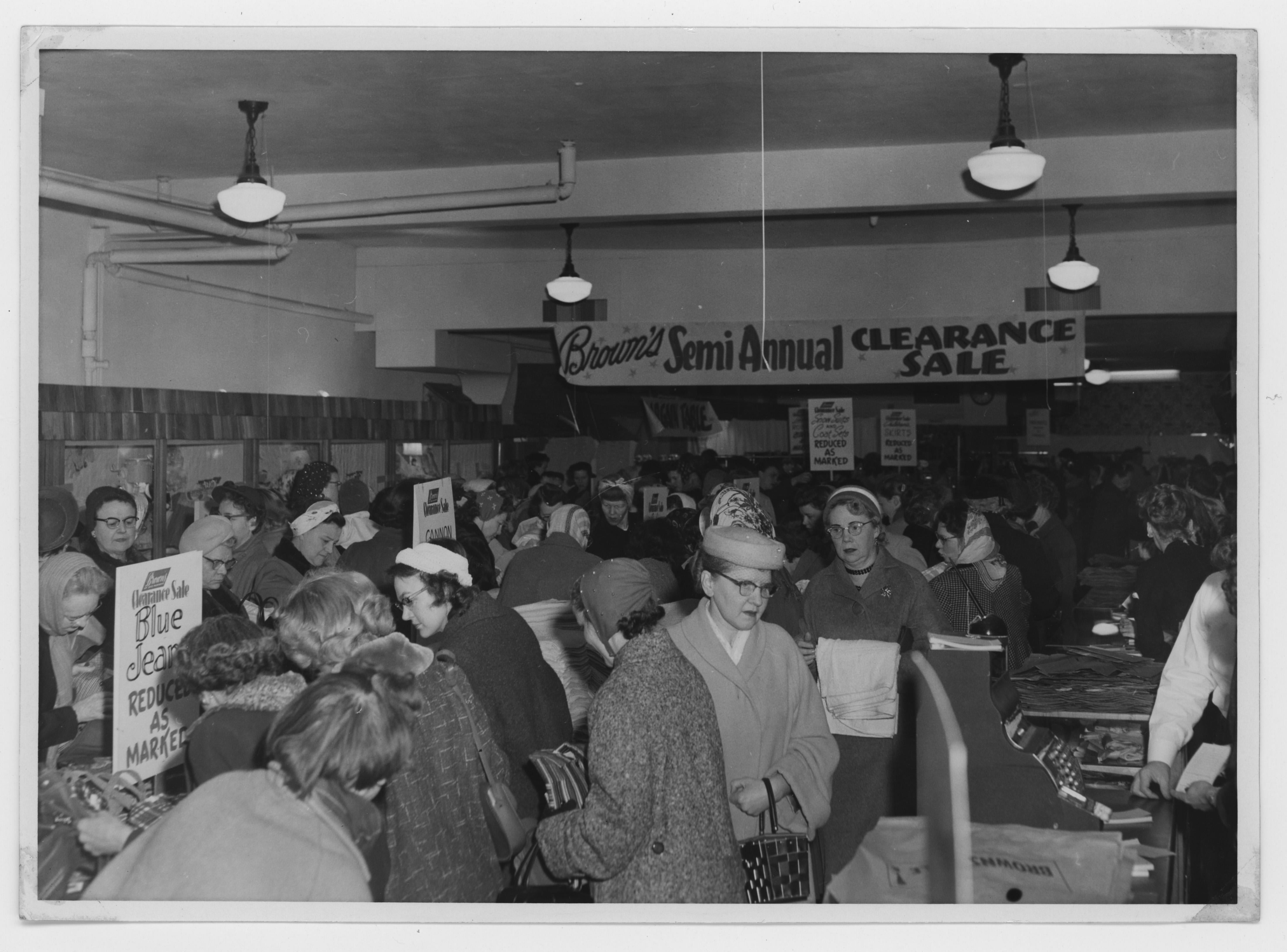 Women shopping at Brown’s Department Store Semi-Annual Clearance Sale, 1502 Miner Street, Des Plaines, Illinois (February 14, 1957) by AxlCobainVedder