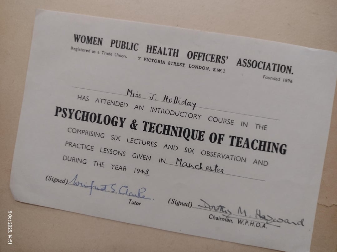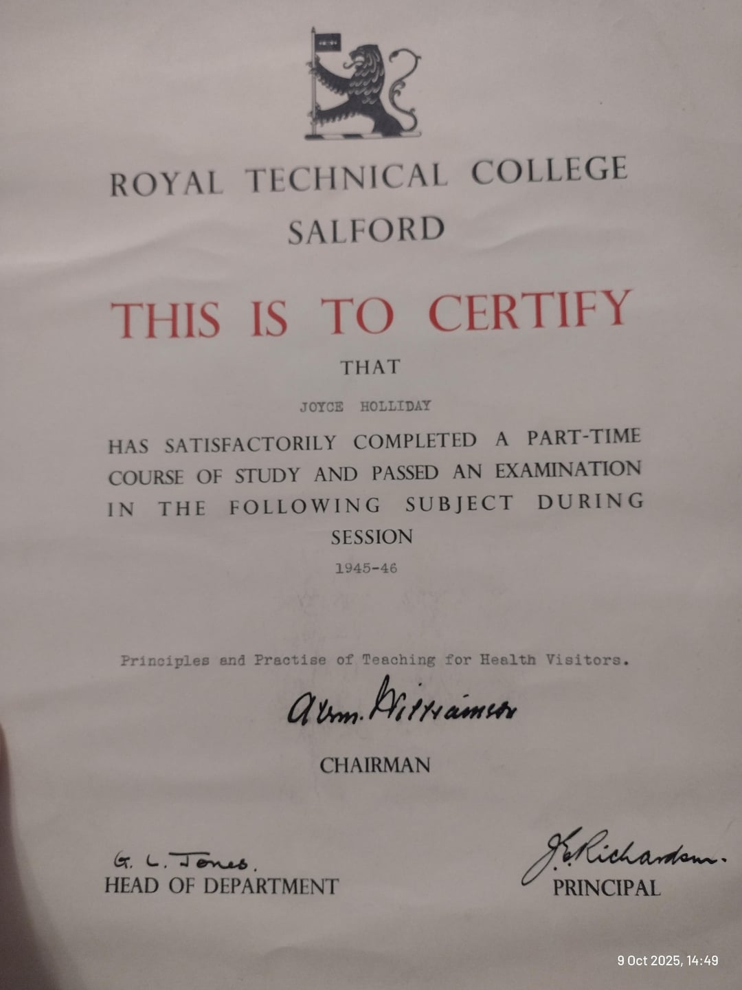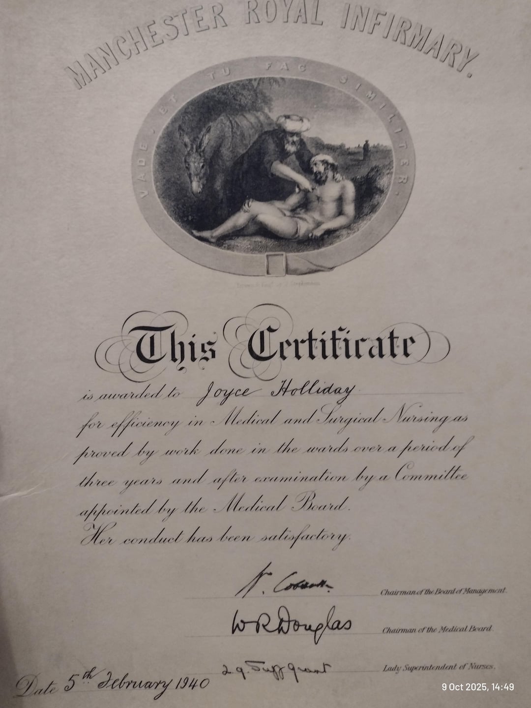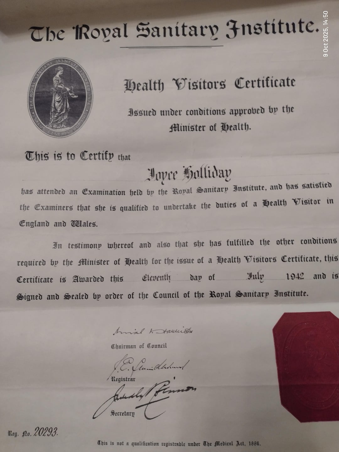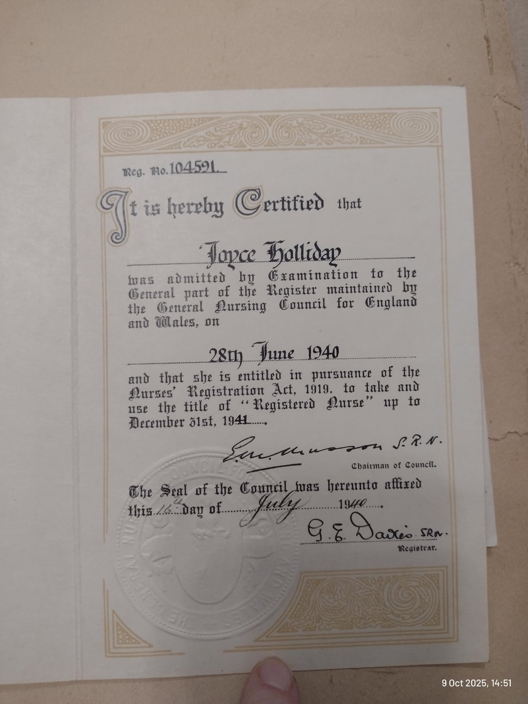She was good friends with a lady I now clean for but died around ten years ago. I'm told she enjoyed going on holidays and was open about the fact that she married her husband for his money! I believe they had a happy marriage and chose not to have children. I also have a small collection of photographs of people I don't know but may be family members of Joyce, the lady isn't sure. I'm in touch with my local museum about donating all these for that she isn't forgotten 🙂