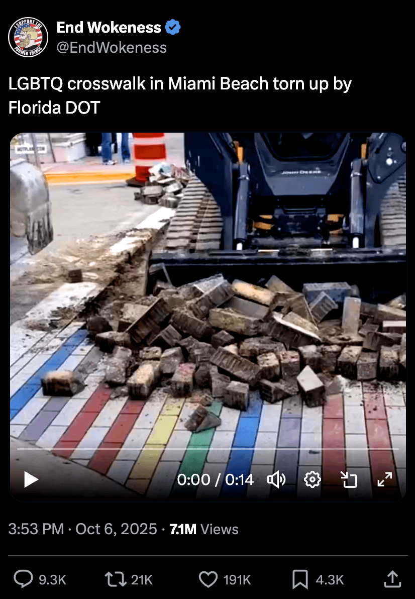 4. I realize Florida doesn’t have a state income tax, so where is the money coming from that is paying for this? DeSantis et al would rather waste money on destroying and redoing a perfectly good crosswalk instead of actually repairing streets that need it?