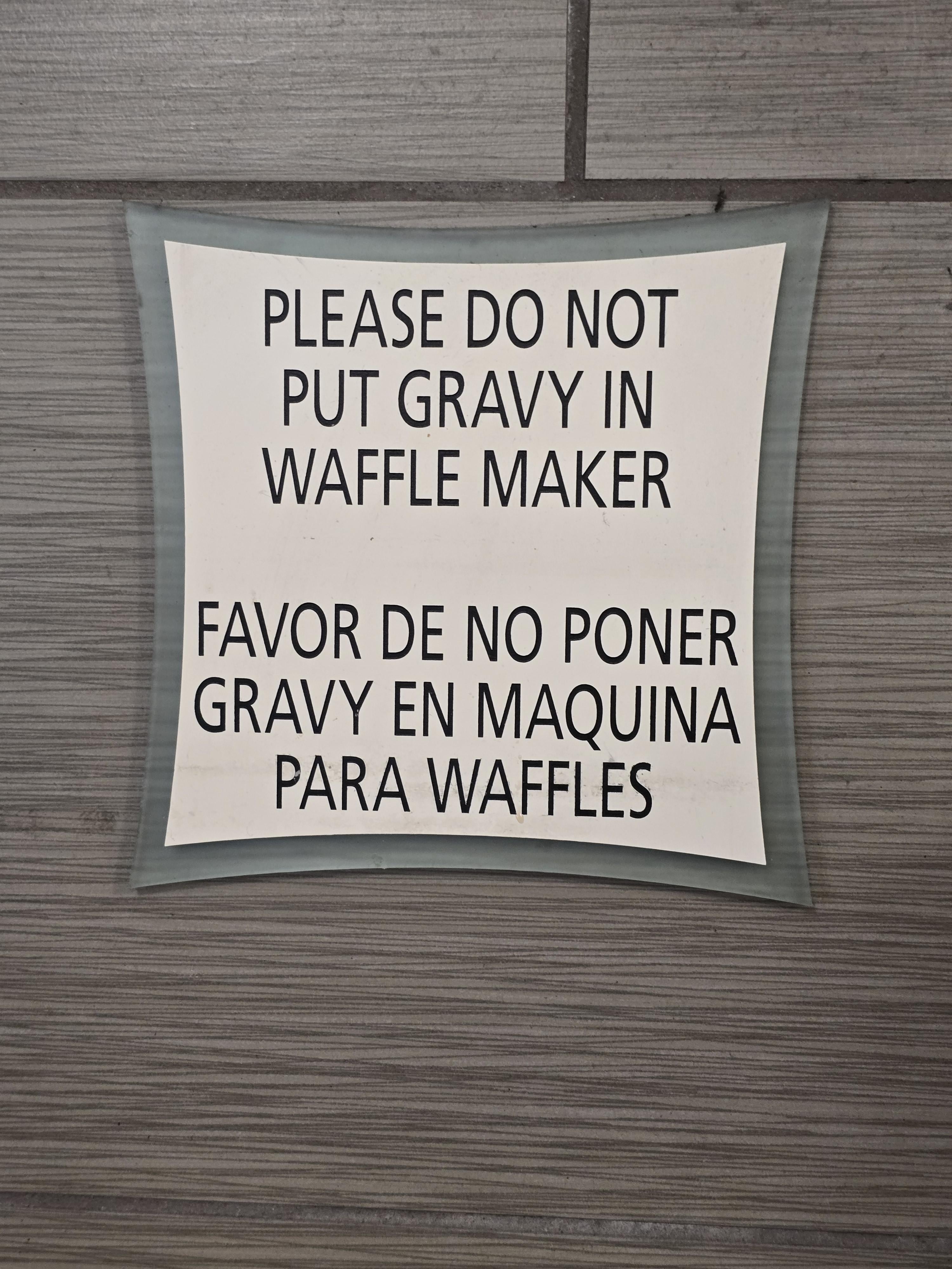 I’m sure they don’t mean “no” gravy, it just has to be in a proper ratio of gravy to waffle batter.