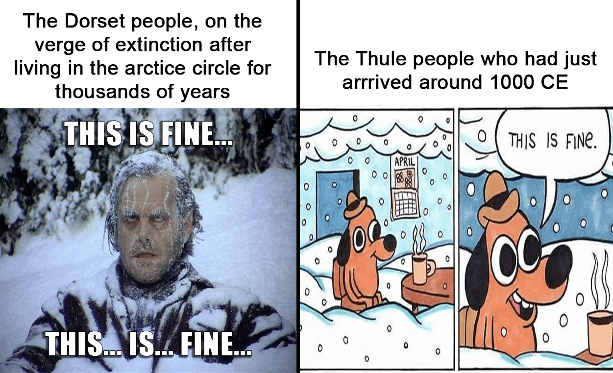 - The Thule people (ancestors of the modern Inuit people) had just arrived in North America and were settling the arctic circle region.