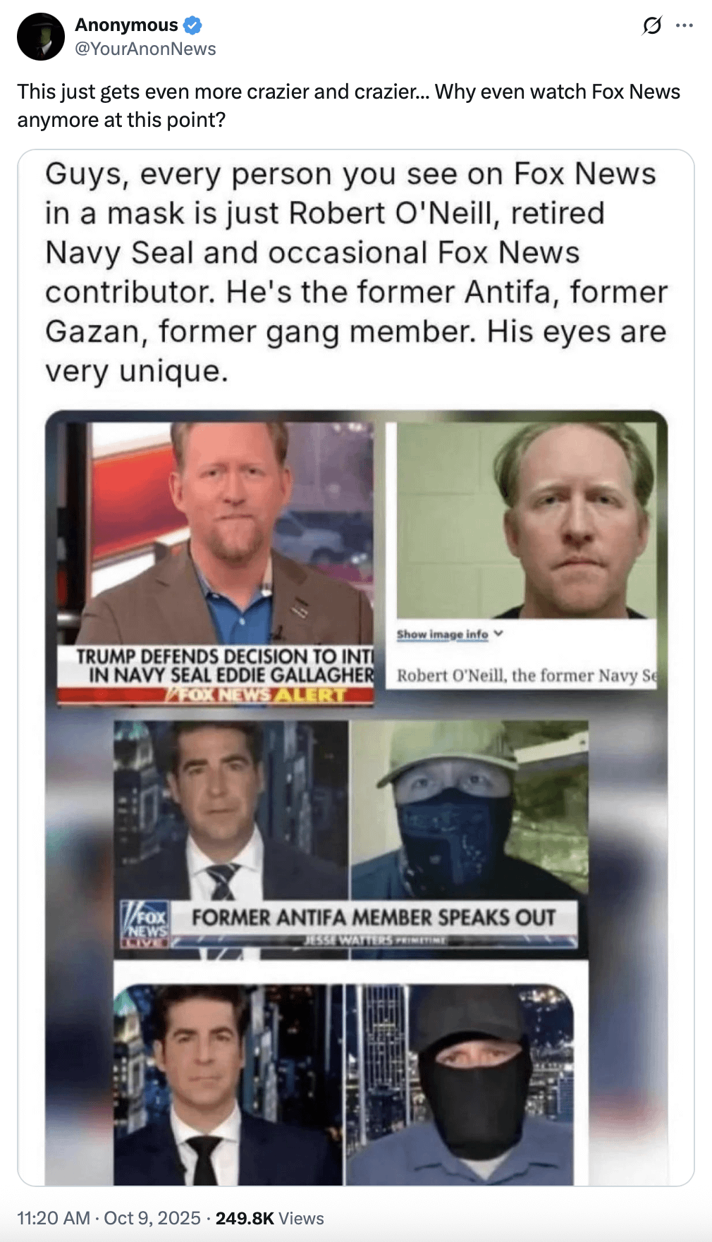 I wonder if, as an ex Navy Seal, it occurs to him that he is participating in a disinformation campaign against his own country.