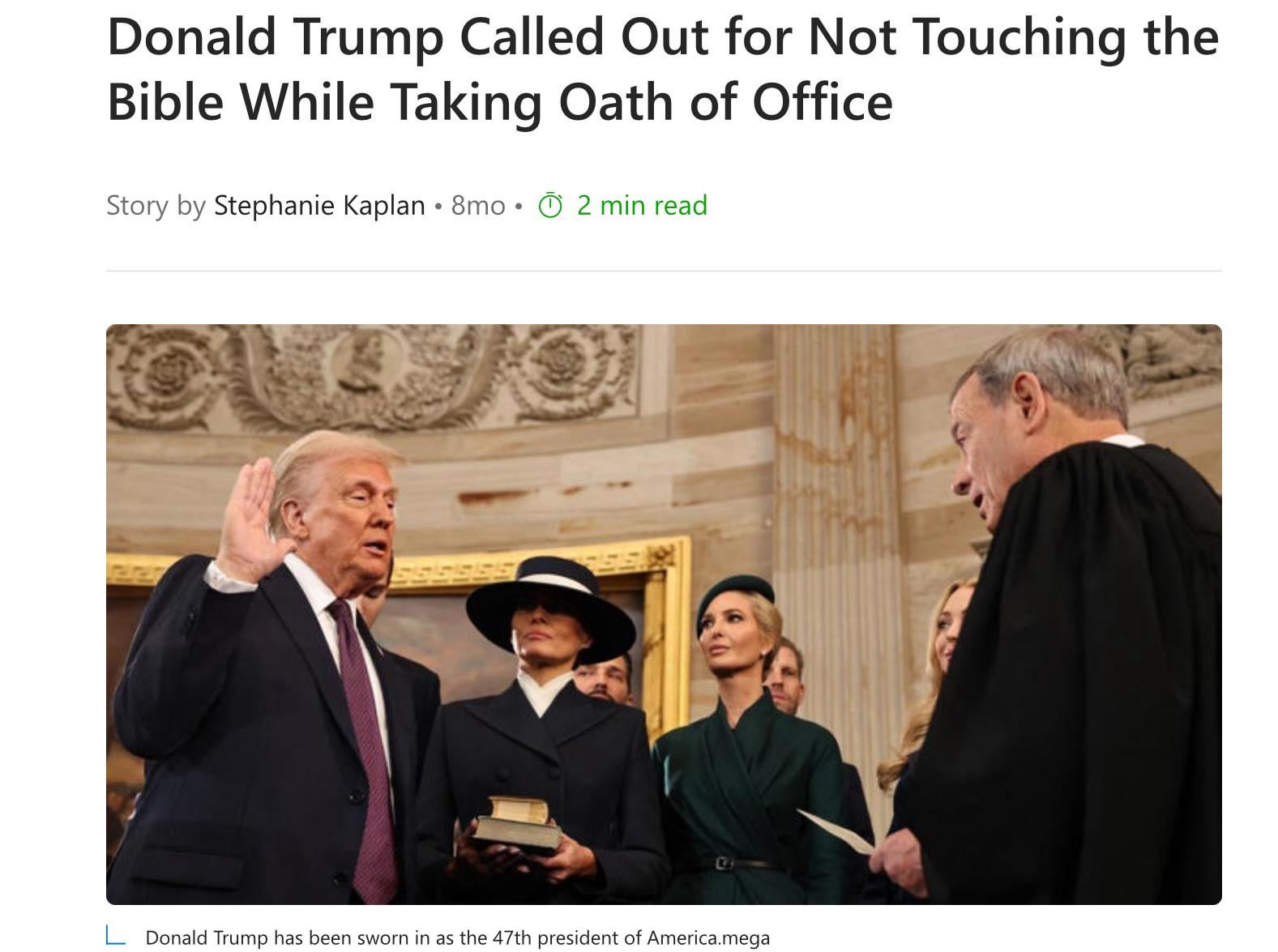 Reminder that his first term, he didn’t swear in in a Christian Bible either. He used the Jeffersonian Bible, which has Jesus’s miracles removed. Thomas Jefferson was a Deist, not a Christian.