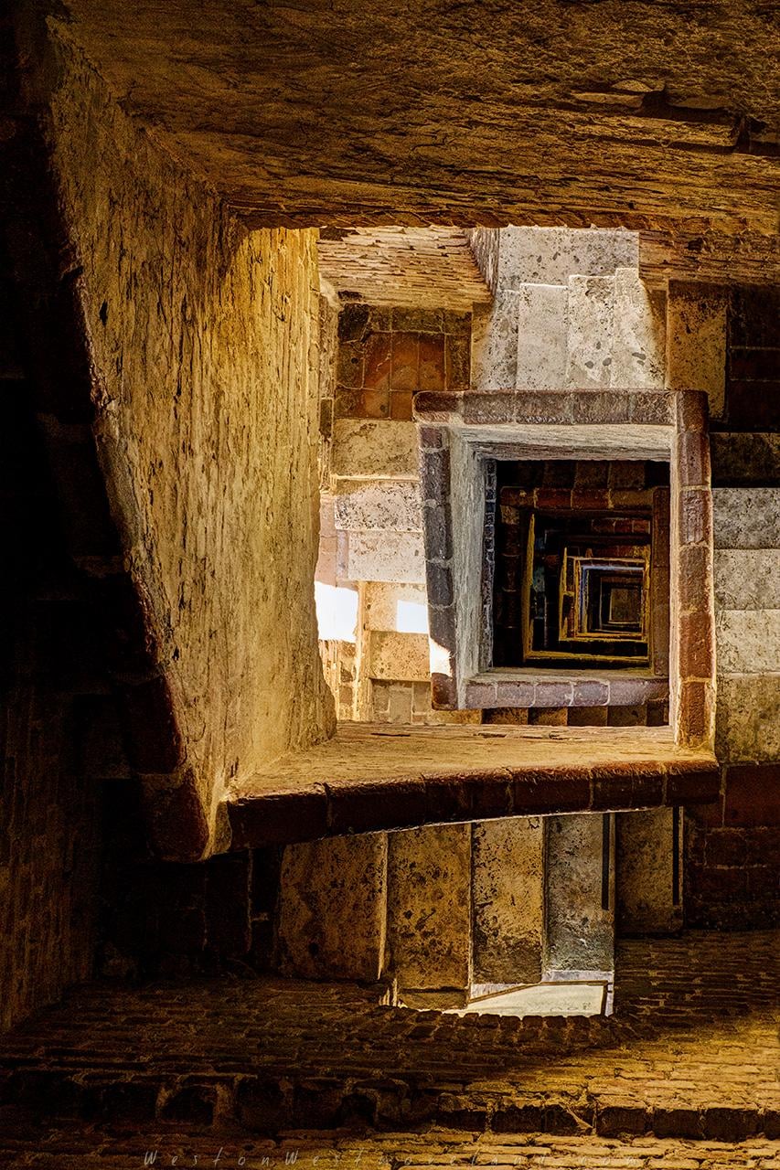 Staircase inside the Torre del Mangia, Siena, built between 1338-1348. Part of the Palazzo Pubblico, the town hall, when built it was one of the tallest secular towers in medieval Italy. At 102 m (335ft) it is now the second tallest after Cremona Cathedral’s Torrazzo (112 m (367 ft)). [1280×853][OC]