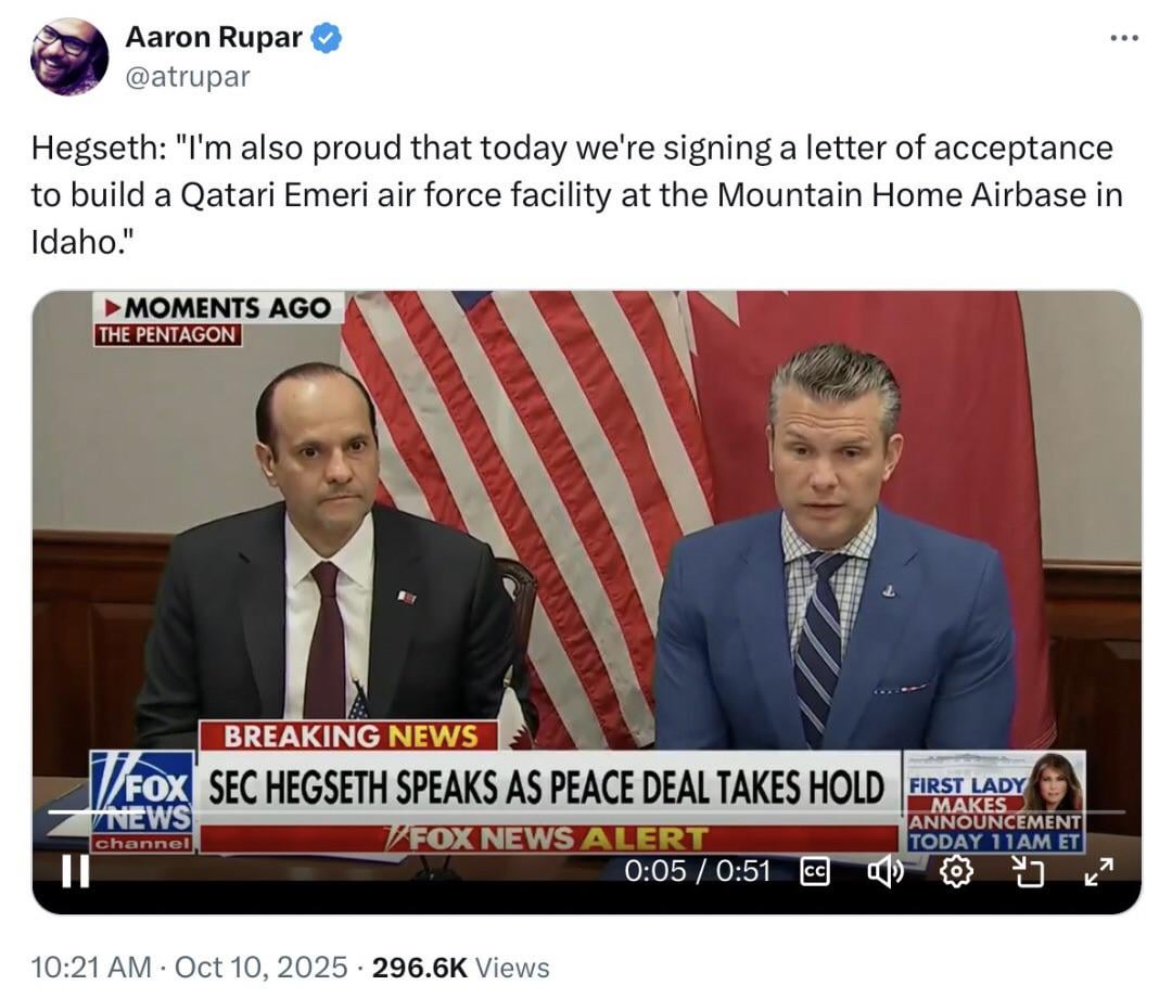 “excuse me, why are you proud of a Qatari base in Idaho?” – a reporter who has a spine, if one existed