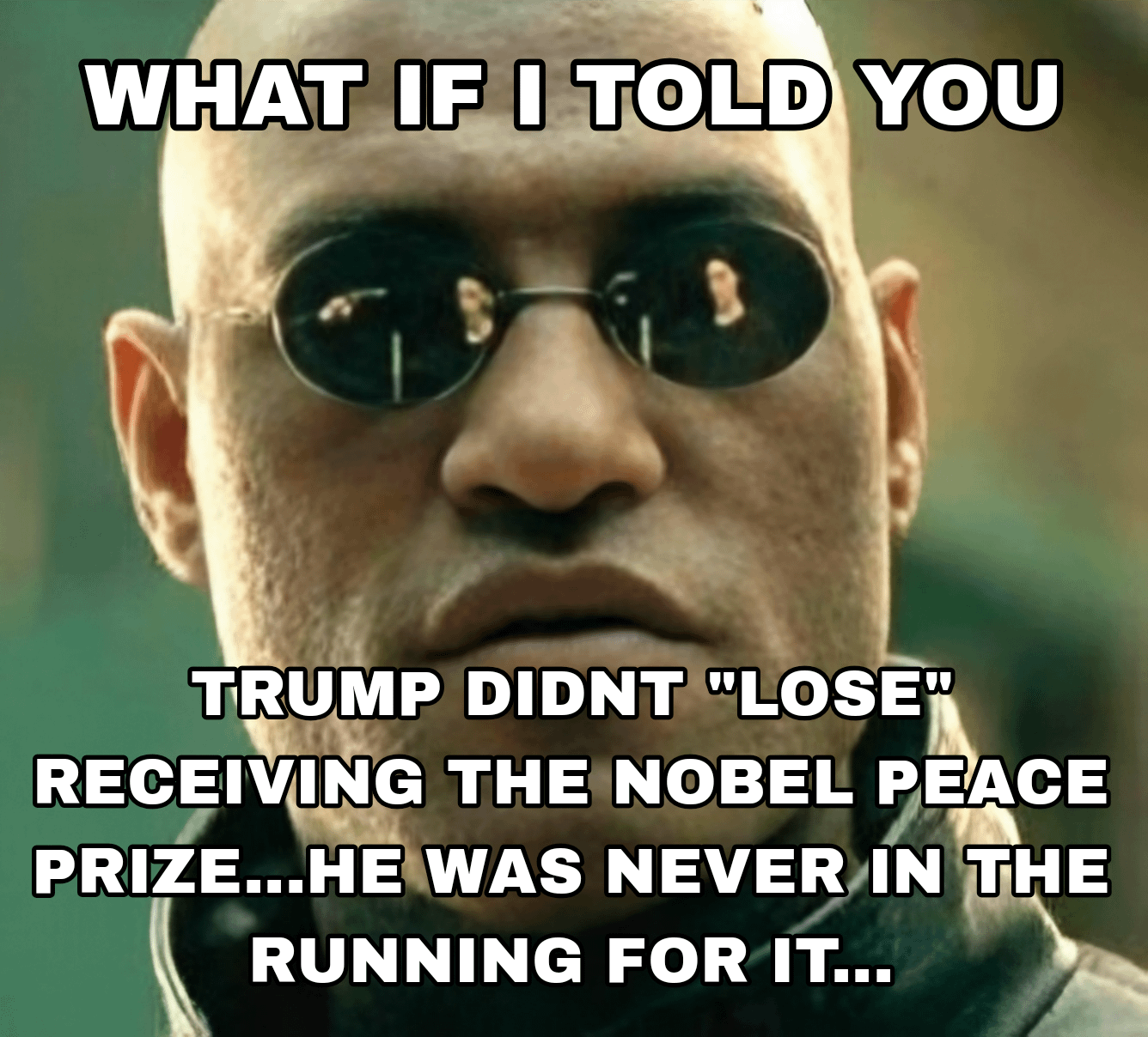 The only debate the Nobel committee had regarding Trump is whether or not they would release some sort of statement saying something to the affect of “ #THERES NOT A SNOWBALLS FUCKING CHANCE IN HELL YOULL EVER SNIFF THE HANDS OF ANYONE WHO HAS TOUCHED A NOBEL PEACE PRIZE”