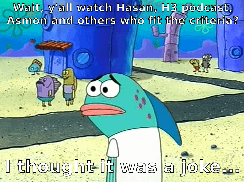 Let me break it down: lunatics watch Hasan, sociopaths watch H3, and biohazards watch Assmongold.