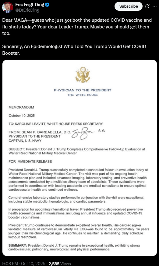 Would love to know if our dumb governor Ron Desantis secretly gets both the flu and covid shot