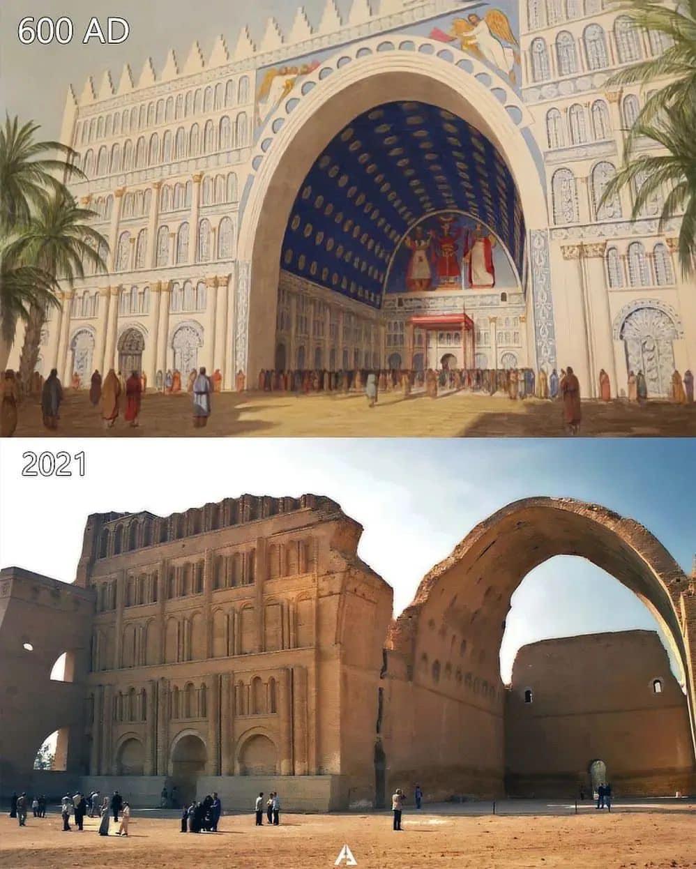 The Arch of Ctesiphon in modern-day Iraq is the only remaining structure of ancient Ctesiphon, built in 242–272 AD during the Sassanid Empire. Considered a landmark in architecture history, the Persian masterpiece was on the brink of collapse in 2021 when Iran intervened to restore it. [1246×998]