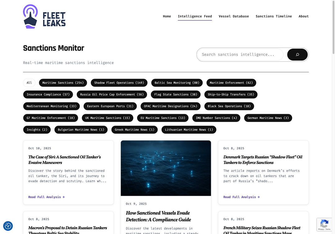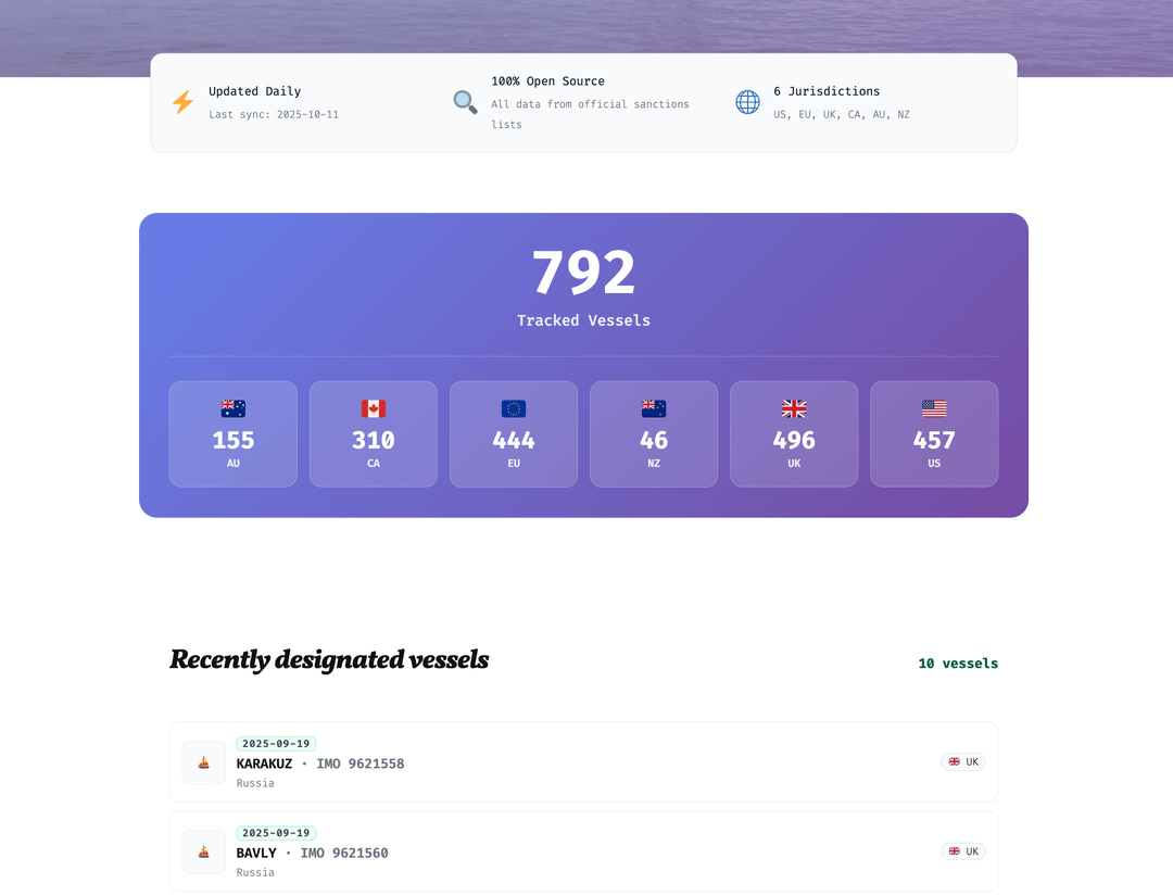 I built FleetLeaks to track and visualize maritime sanctions data from US, EU, UK, and other jurisdictions.