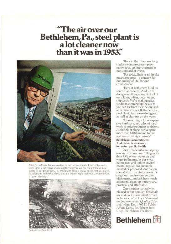 “The air over our Bethlehem, Pa., steel plant is a lot cleaner now than it was in 1953.” Bethlehem Steel ad — February 16, 1981, TIME Magazine. by AxlCobainVedder