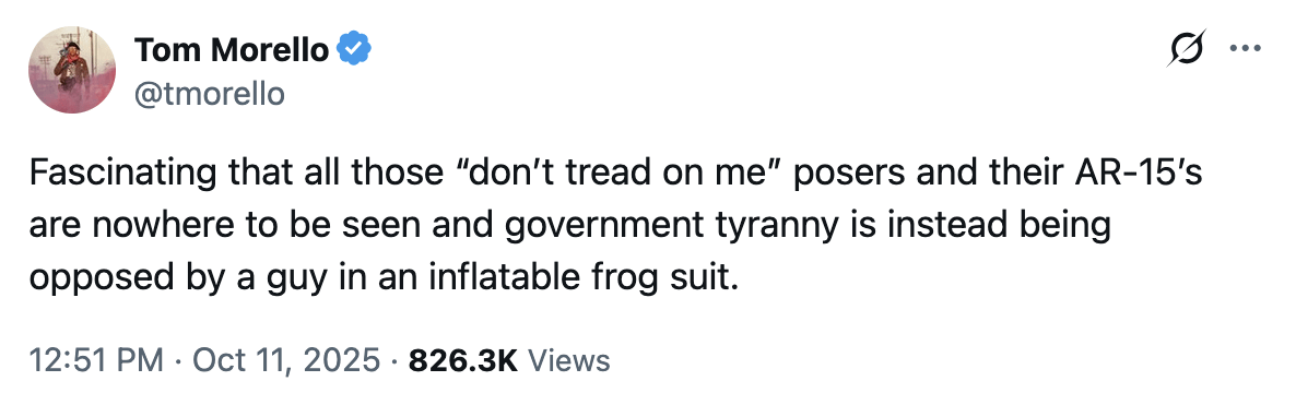 October 12, 2025It truly is amazing how fast we went from ‘the ‘Sound of Freedom’ should be required viewing’ to ‘stop talking about pedophiles’