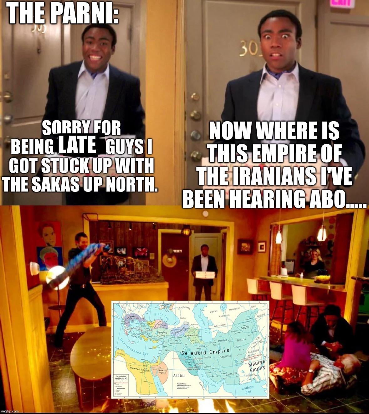 Context: The Parthian Empire’s Ruling dynasty wasn’t actually Parthian originally. They were of the parni tribe and a part of dehea confederation, Eastern Iranian Saka tribes.