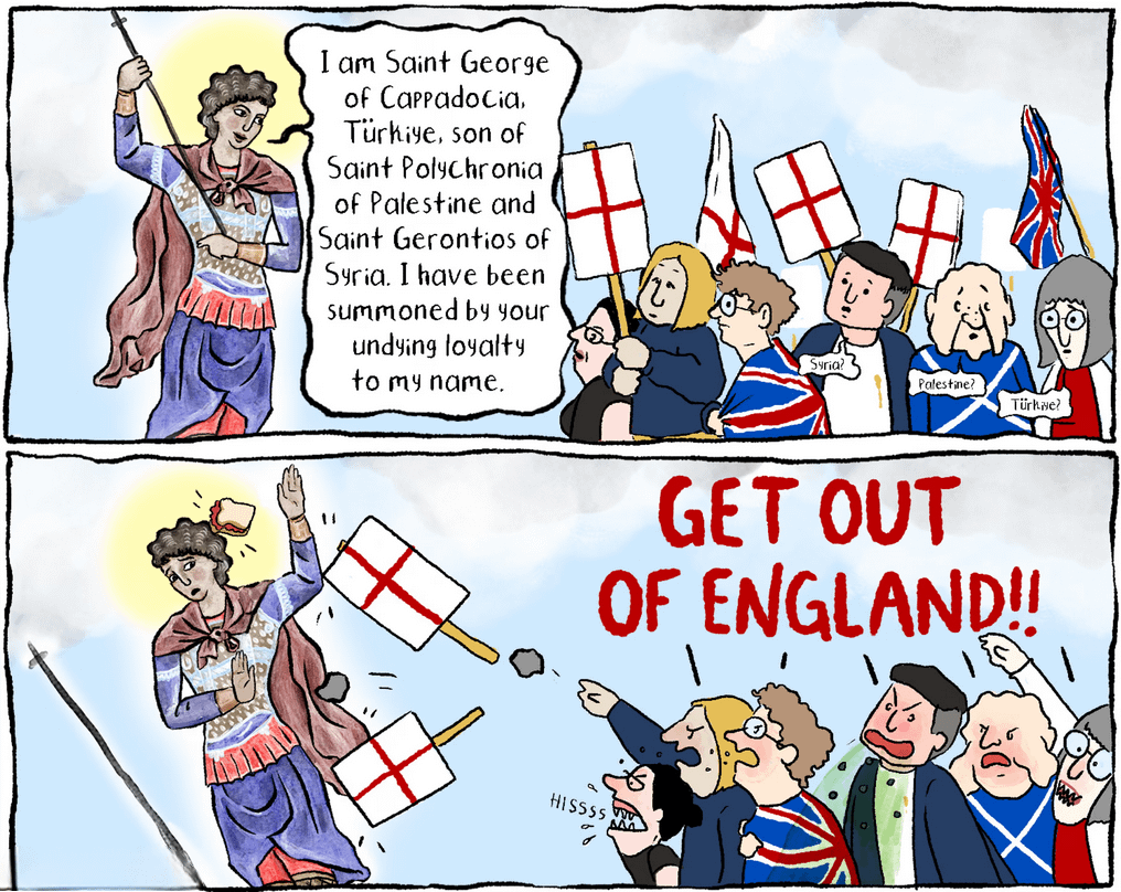 6. The weird fantasy people have with the idea that anyone in England actually cares that St George wasn’t English goes on.