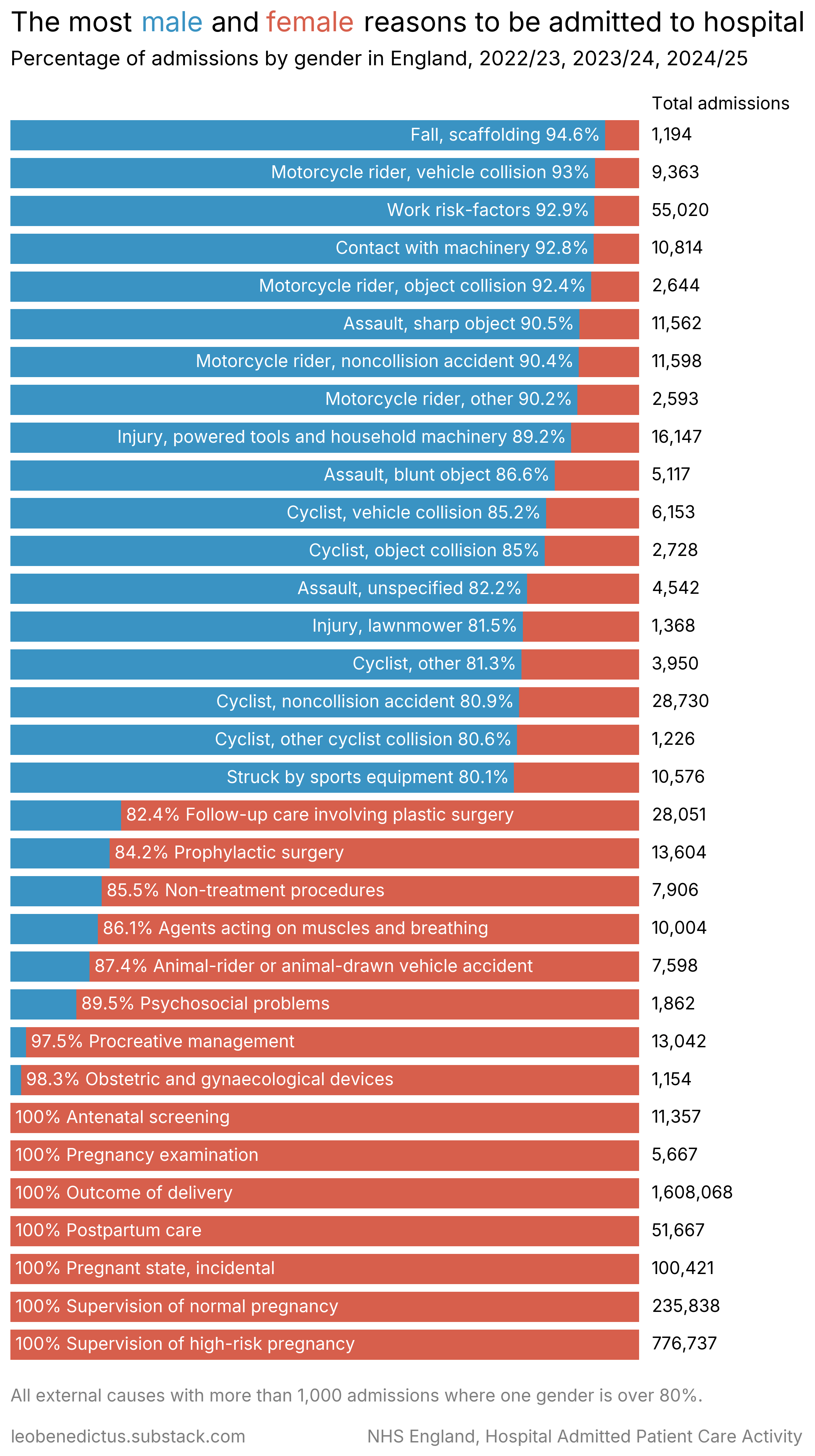 8. I’m pretty sure the reasons men get themselves in the ER is one of the comorbidities for women going into the ER for psychological issues.