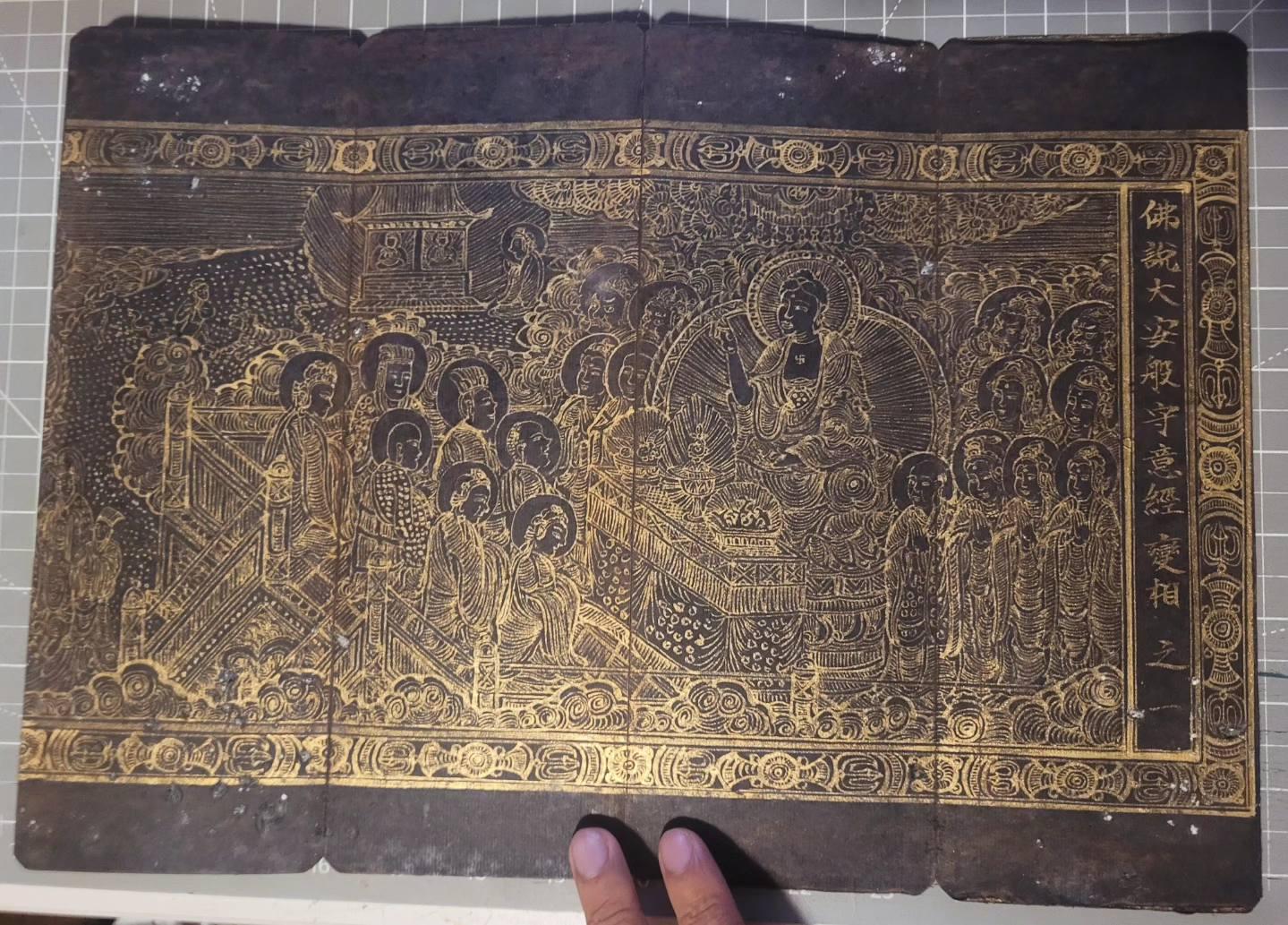 Fú shuō dà’ān bān shǒu yì jīng (The Great Anapanasati Sutra), Circa 1270-1300. Fourth fascicule. Illuminated manuscript written in gold ink on indigo dyed paper. Produced in the Goryeo Kingdom of Korea while servicing as a vassal state to the Yuan Dynasty [1439×1033]