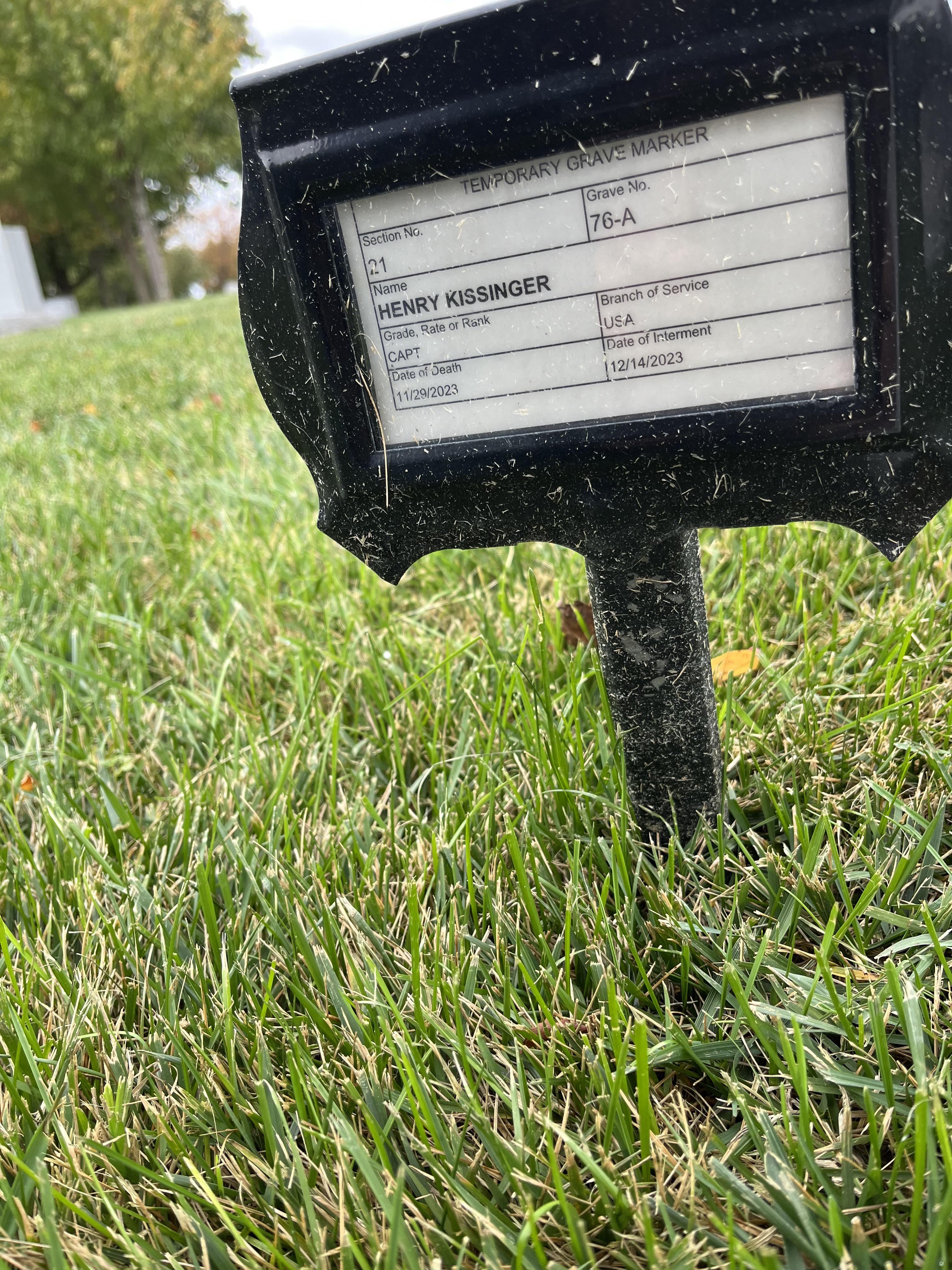4. My understanding is that this has to do with the fact that he decided to be buried in Arlington. There is a lot of red tape around private headstones installed there (in fact, they aren’t allowed at all anymore but Kissinger is grandfathered in), so it’s going to take awhile until something is placed and approved.