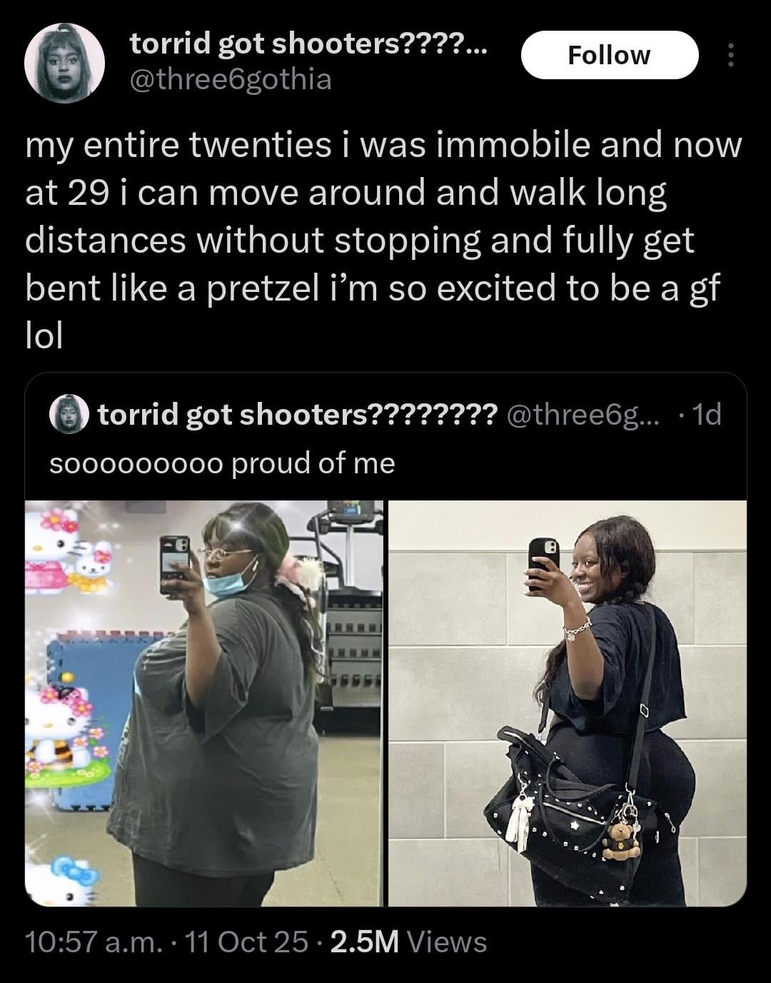 Stiqkey on October 13, 2025 12:39 am Fucking lol good for her. Nothing quite like getting to be the freak you were always meant to be.