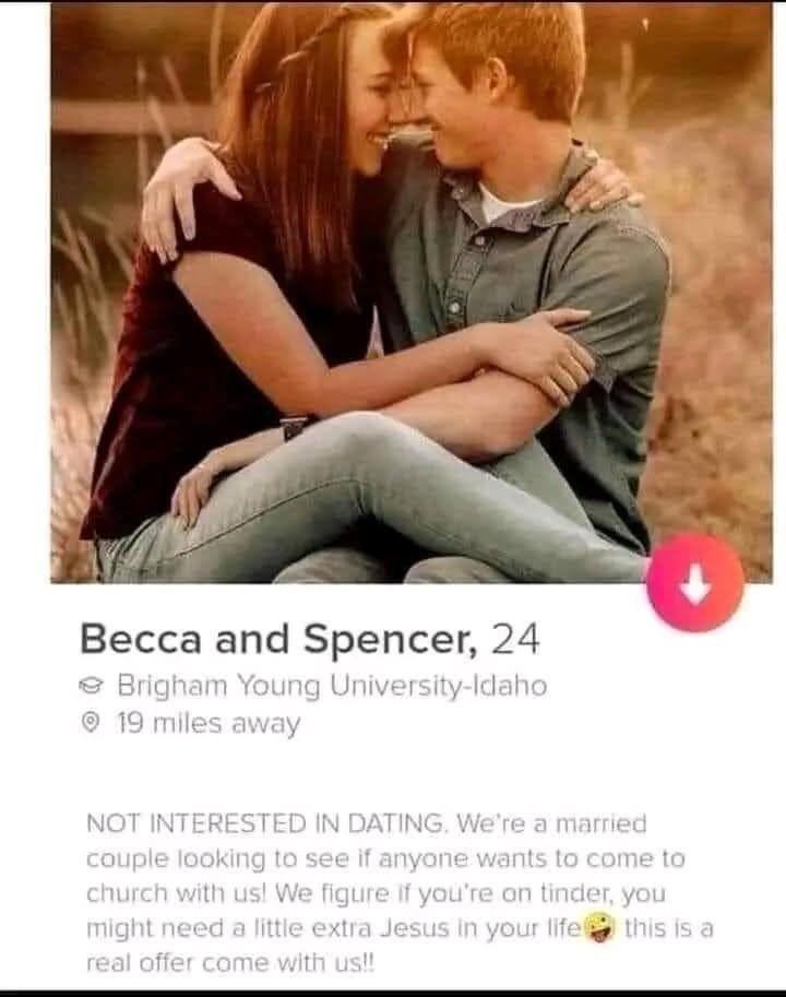 StevenMC19 on October 13, 2025 2:44 am BYU. Yup, they’re done with the door-to-door and are going straight after your loneliness now. Go away, Mormons!