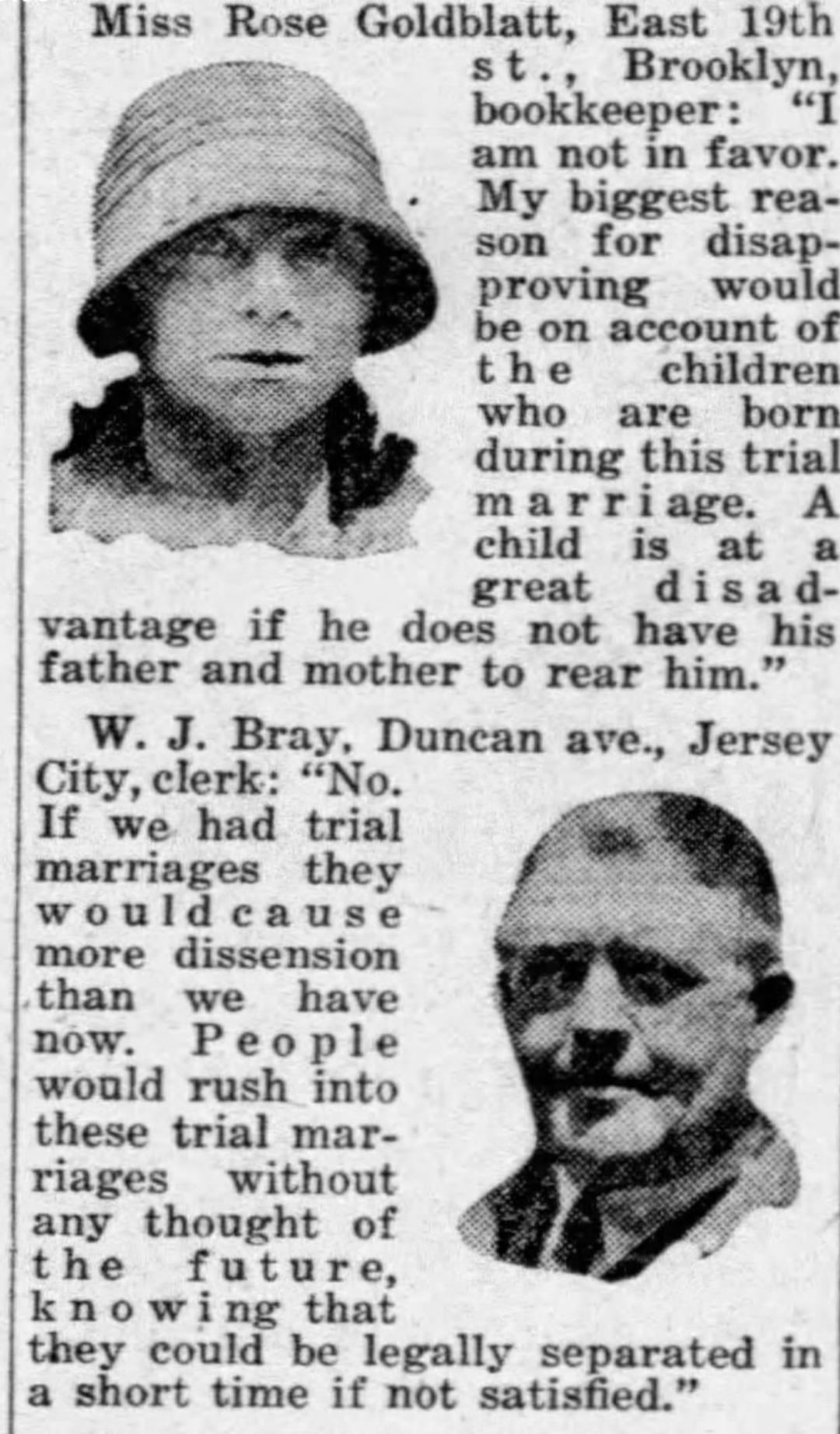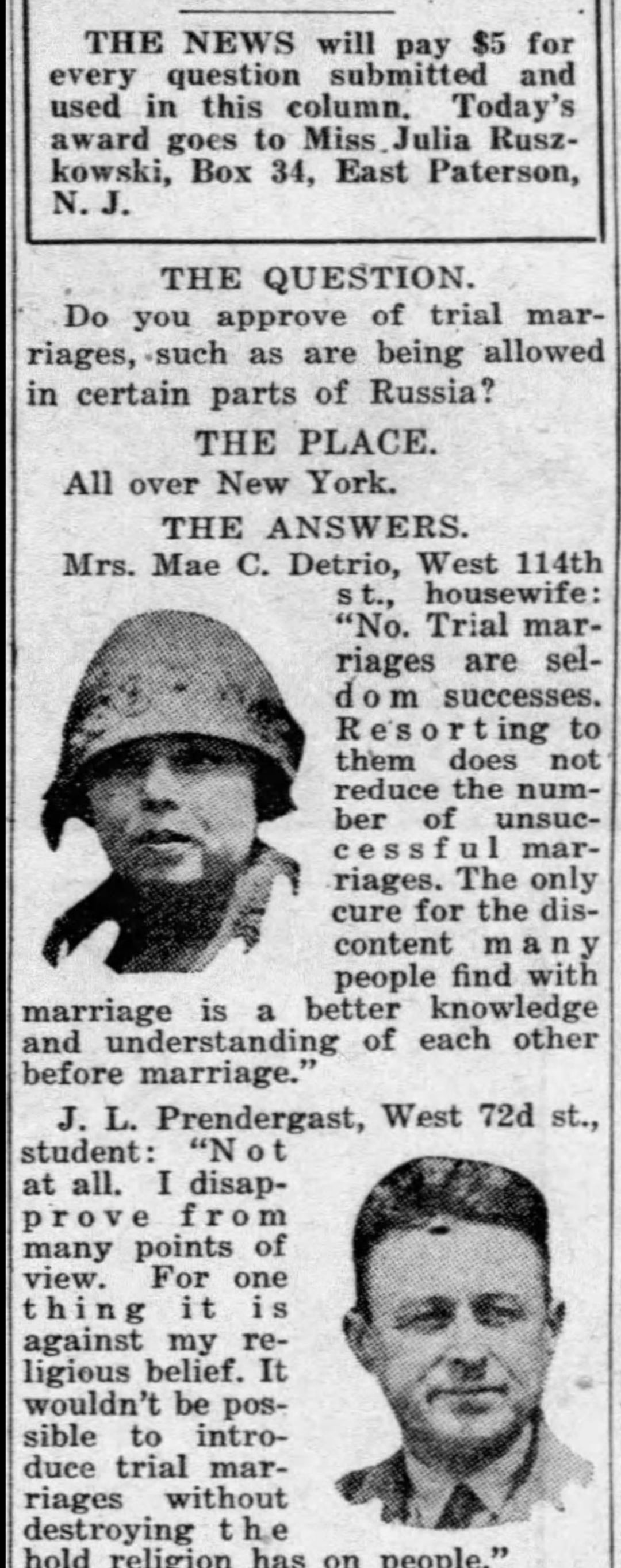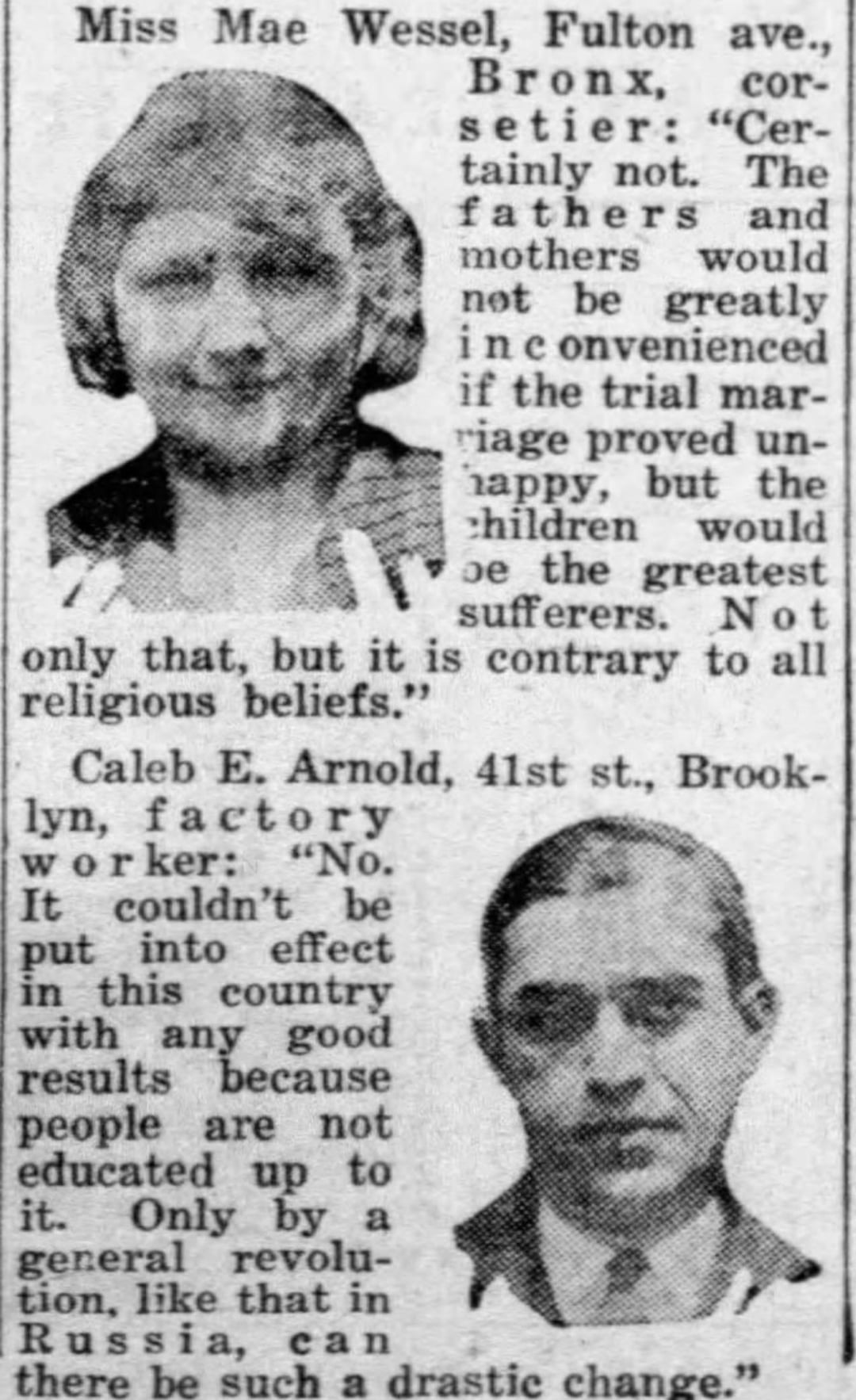 The Inquiring Photographer asks, “Do you approve of trial marriages, such as are being allowed in certain parts of Russia?”May 23rd, 1925 by CryptographerKey2847