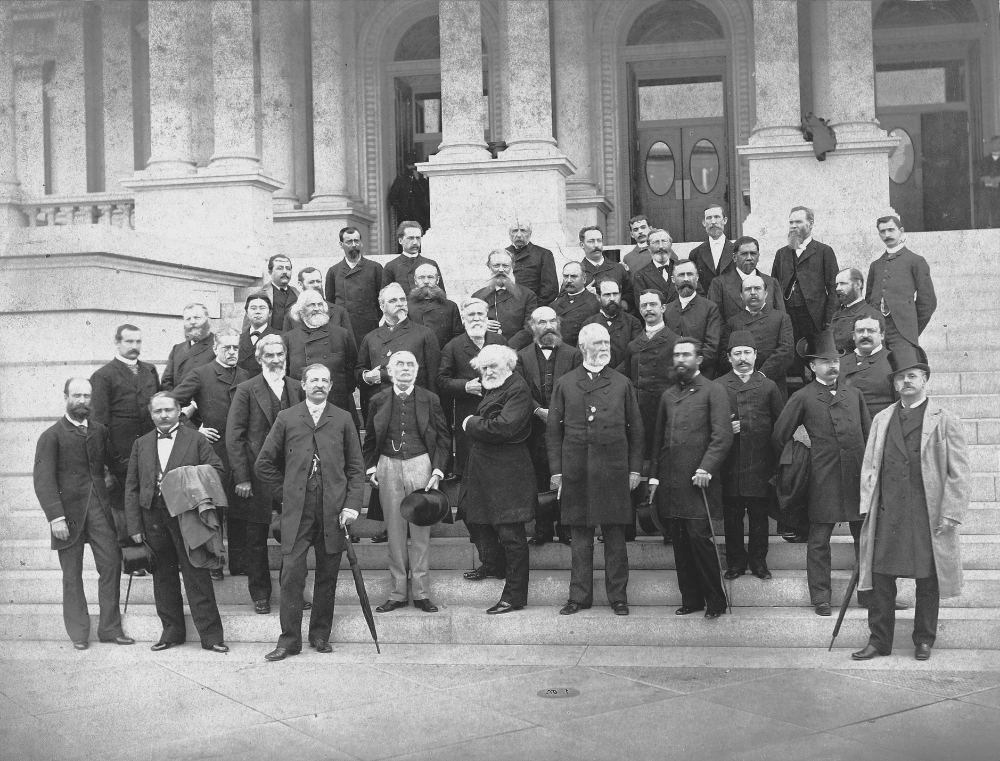 On this day in 1884, International Meridian Conference in Washington DC established Greenwich in London, England as the universal time meridian of longitude. (In pic) Conference delegates, on the steps of the State-War-Navy Building. [1000×761]