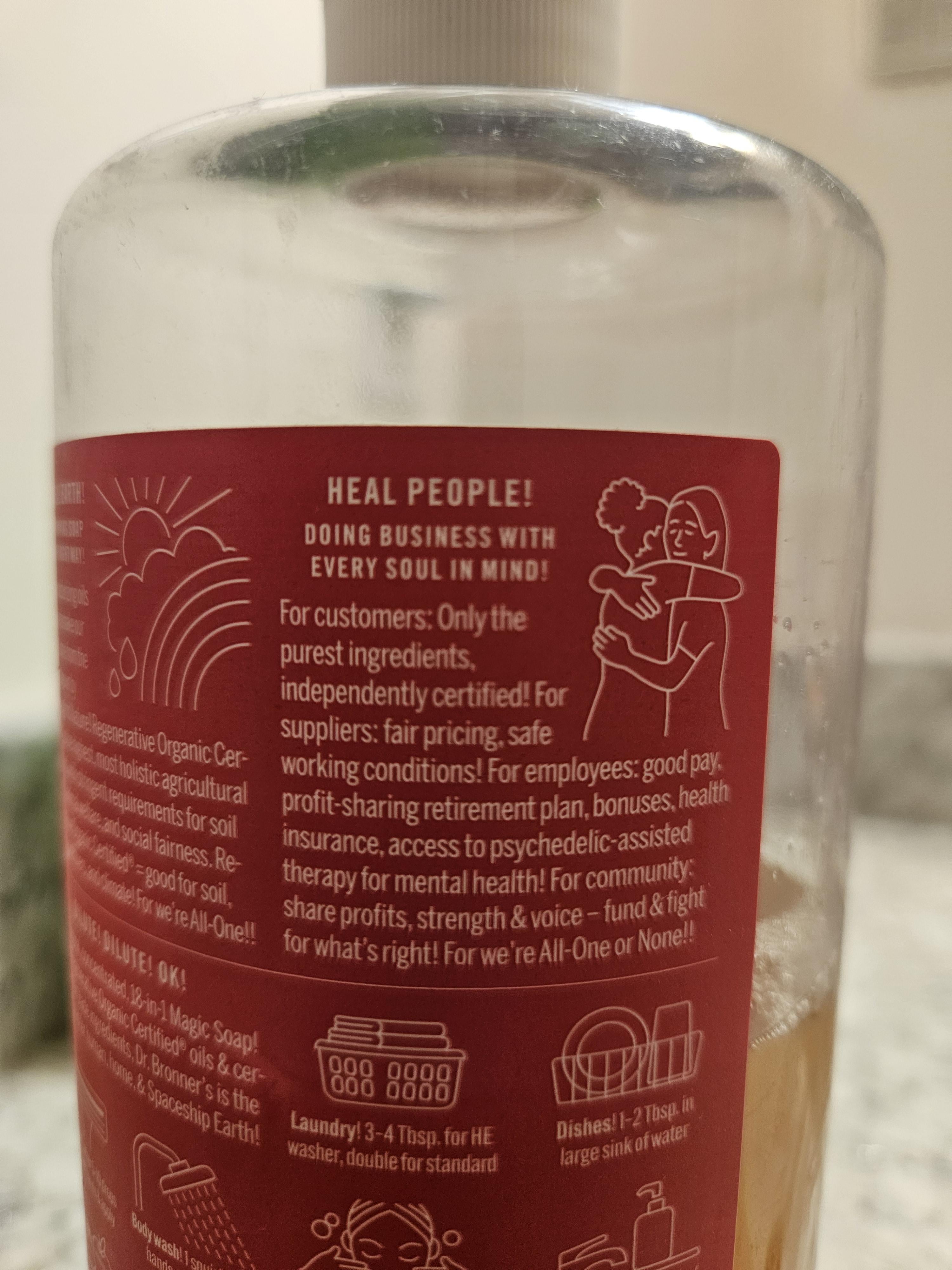 The company is currently run by [Dr Bronner’s grandson](https://en.wikipedia.org/wiki/David_Bronner), who is a bit of a hippie, in a good way, and is all in favour of stuff like that.